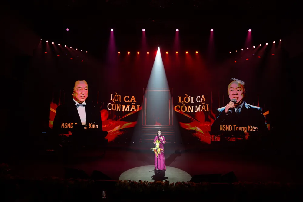 Tối 16-11, tại Phòng Hòa nhạc Lớn, Học viện Âm nhạc Quốc gia Việt Nam (HVANQGVN), đã diễn ra đêm nghệ thuật đặc biệt Lời ca còn mãi tri ân, tôn vinh cố GS.NSND Trung Kiên - cây đại thụ của nền thanh nhạc Việt Nam.