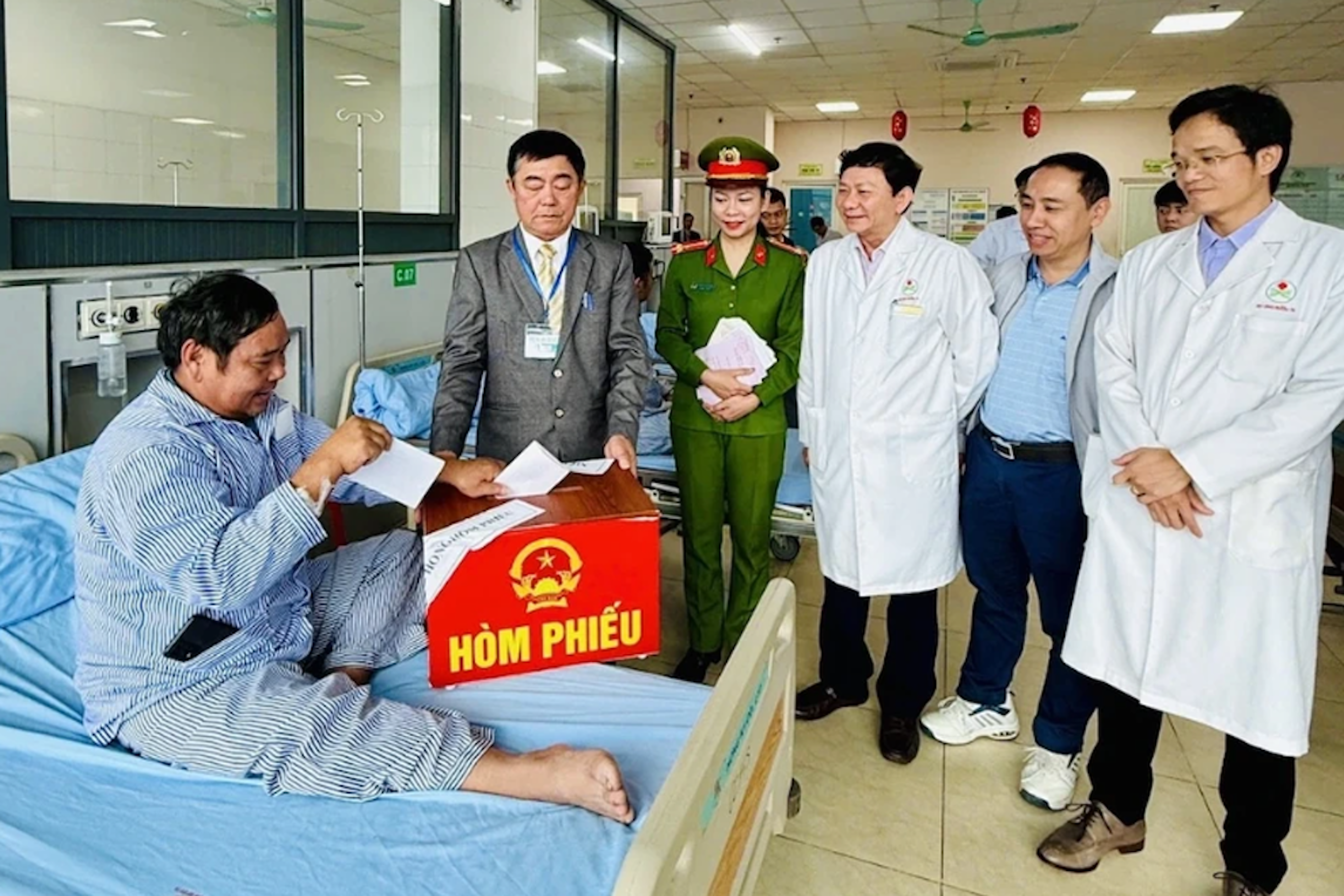 Tại các bệnh viện lớn của Thanh Hóa như Bệnh viện Đa khoa, Bệnh viện Ung bướu tỉnh, các chiến sỹ công an phối hợp với nhân viên y tế, thành viên tổ bầu cử mang hòm phiếu đến tận giường bệnh. Với nhiều người đang chiến đấu với bệnh tật, lá phiếu trên tay như liều thuốc tinh thần, khẳng định họ vẫn đang đóng góp và tham gia vào vận mệnh của đất nước.