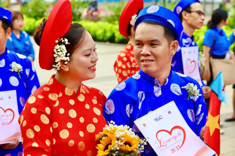 Ngày 24-10, 50 cặp đôi công nhân cùng nhau tham gia Lễ cưới tập thể năm 2025 do Trung tâm Hỗ trợ Thanh niên Công nhân TP.HCM tổ chức.