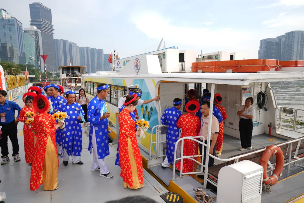 Các cặp đôi công nhân, người lao động từ TP.HCM, Bình Dương và Bà Rịa - Vũng Tàu sẽ diễu hành bằng xe điện, buýt sông và metro qua các cung đường rực rỡ của TP.HCM, cùng hòa chung niềm vui trong ngày cưới trọn vẹn.