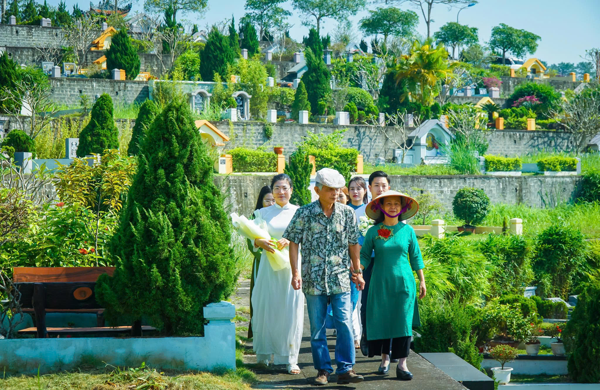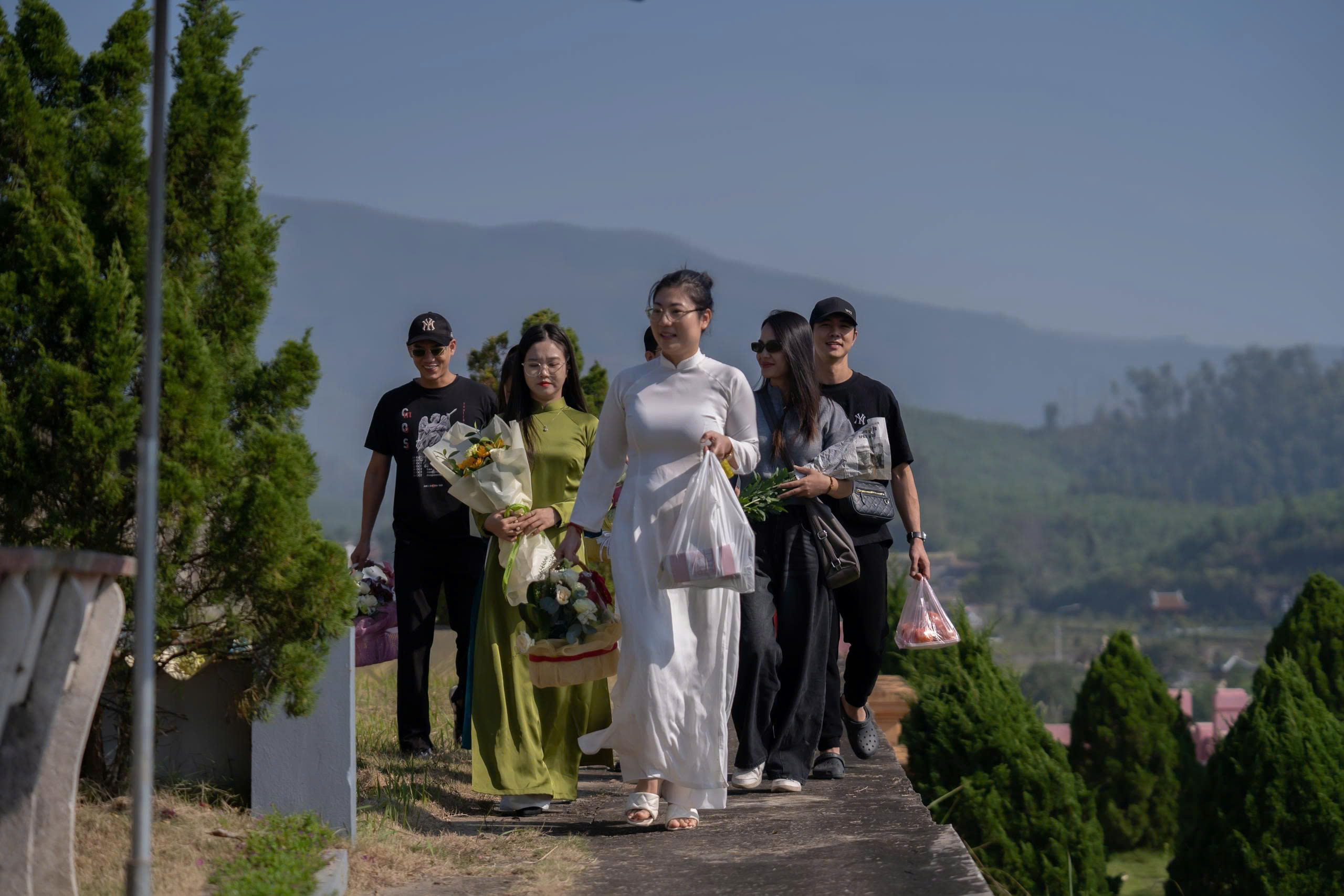 Những diễn viên, học trò của NSND, Đạo diễn Phạm Anh Tú; các con của thầy giáo Nguyễn Quốc Khánh; cùng nhiều gia đình đã trở về nơi yên nghỉ của người thân để thắp nén nhang tri ân tại nghĩa trang.