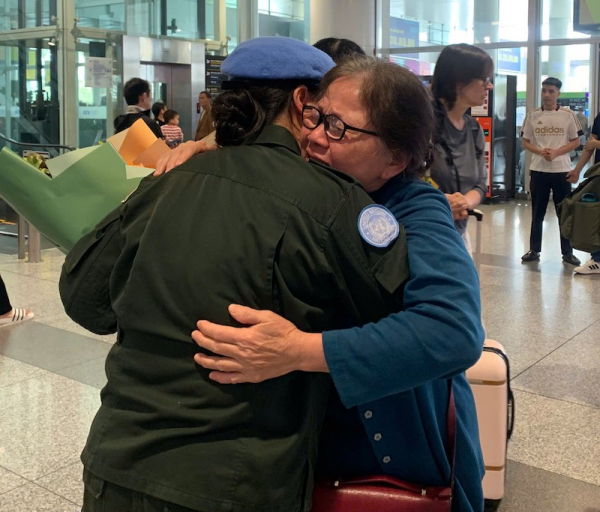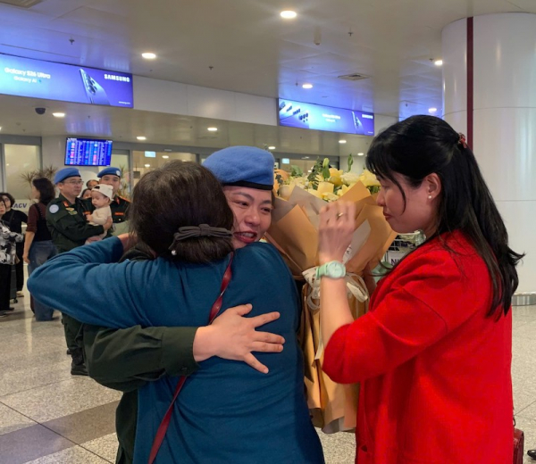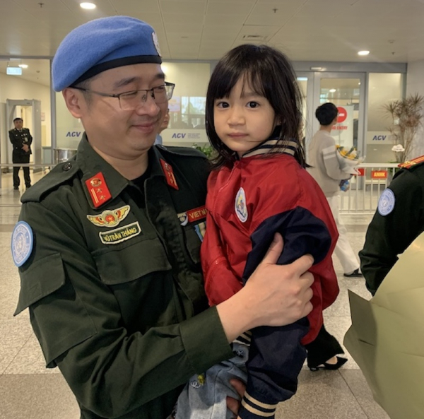 “Sau gần hai năm công tác xa nhà với một nhiệm kỳ đầy thử thách, được trở lại Tổ quốc trong vòng tay của gia đình, bạn bè và đồng đội, cảm giác đầu tiên của tôi là sự yên bình xen lẫn niềm tự hào. Tôi và đồng đội mong sẽ tiếp tục được cống hiến, đóng góp cho sứ mệnh cao cả này; đem những kinh nghiệm thực tiễn, những bài học, những câu chuyện để chia sẻ và tiếp tục đóng góp vào công tác chuẩn bị cho các cán bộ kế tiếp trên hành trình gìn giữ hòa bình (GGHB)”- Thiếu tá Vũ Trần Thắng xúc động chia sẻ.