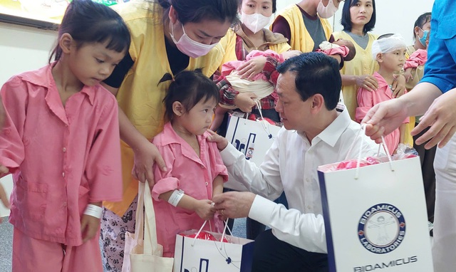 TS. Trần Đăng Khoa - Phó Cục trưởng Cục Bà mẹ và Trẻ em (Bộ Y tế) - cho biết, dịp này Cục phối hợp cùng Quỹ Bảo trợ Trẻ em Việt Nam đã chuẩn bị hàng trăm phần quà và hỗ trợ tiền mặt cho các bệnh nhi. Mỗi em nhận được phần quà Trung thu cùng "hiện kim" 2 triệu đồng, với tổng giá trị hỗ trợ 100 triệu đồng.