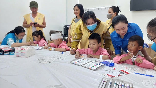 Bệnh nhi được vui Trung thu cùng các anh chị tình nguyện viên và người thân.