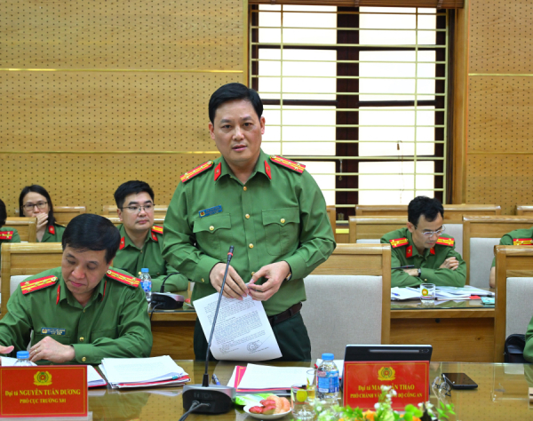 Đại tá Mai Xuân Thảo, Phó Chánh Văn phòng Bộ Công an phát biểu tại buổi làm việc.