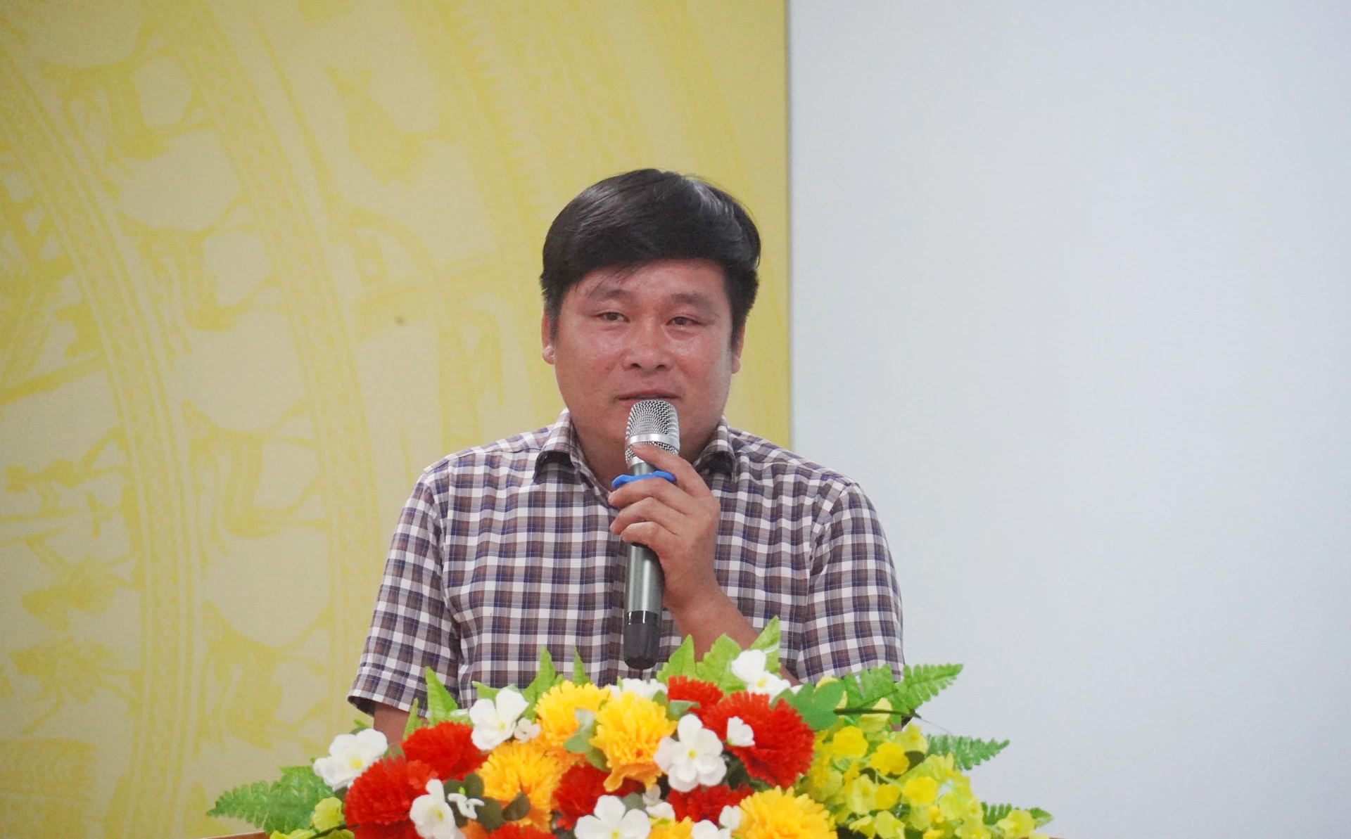 Ông Nguyễn Lương Bình, Trưởng ban Tổ chức Tỉnh ủy trình bày chương trình hành động trước cử tri - Ảnh: X.P