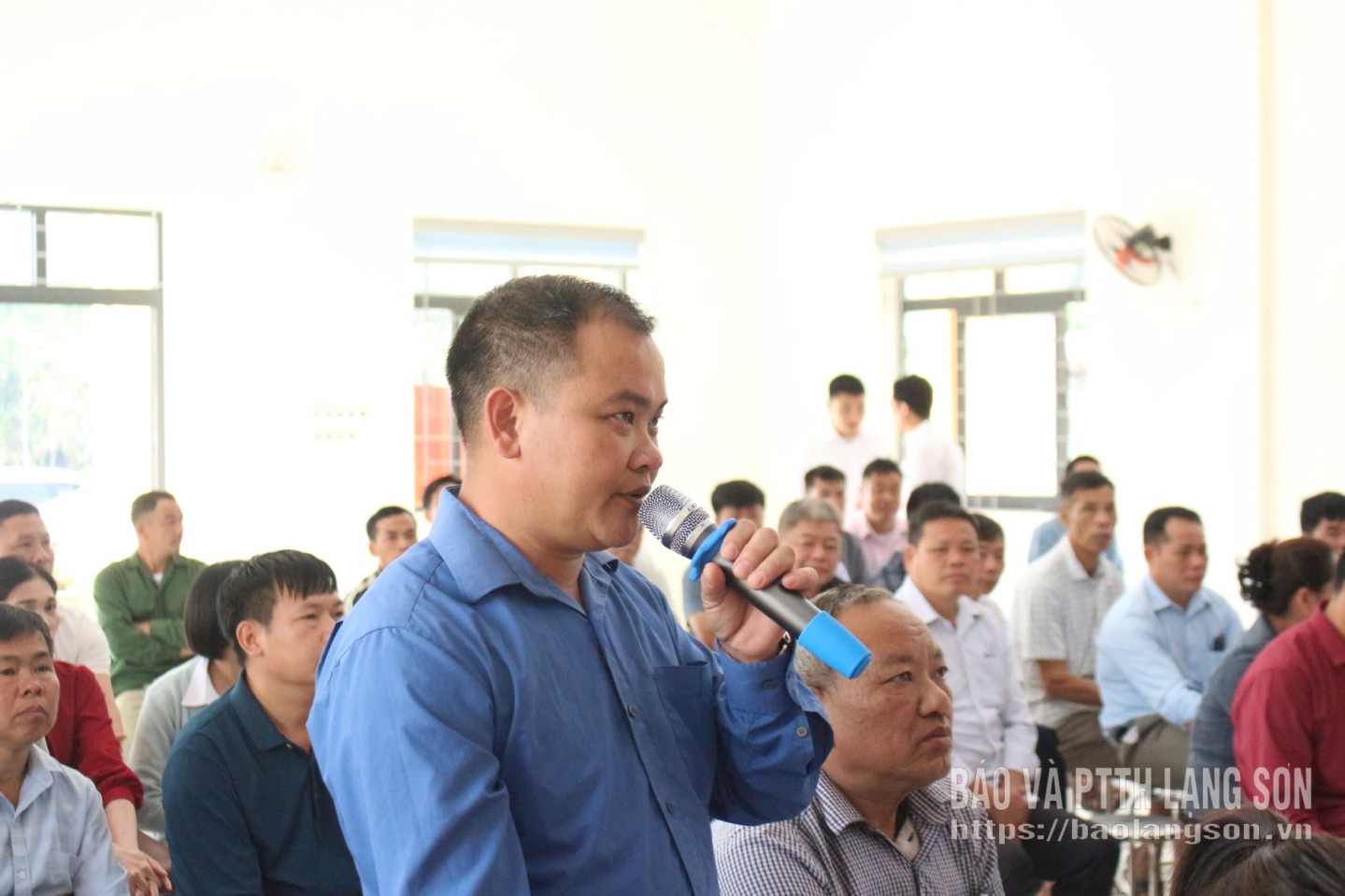 Cử tri xã Yên Bình phát biểu ý kiến tại hội nghị Đoàn đại biểu Quốc hội tỉnh tiếp xúc cử tri định kỳ trước kỳ họp thứ 9, Quốc hội khóa XV