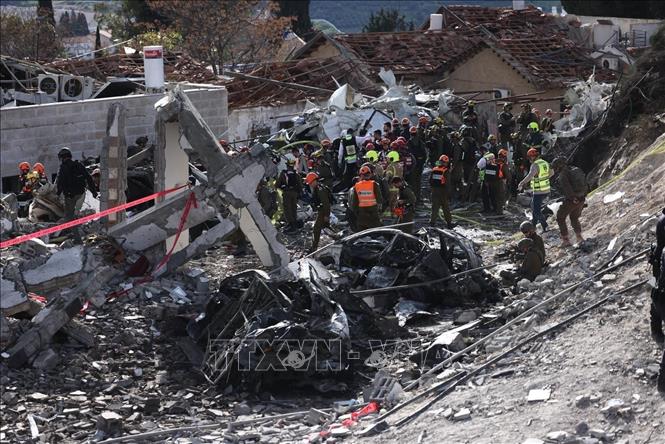 Hiện trường trúng tên lửa Iran tại Beit Shemesh, phía Tây Jerusalem. Ảnh: THX/TTXVN