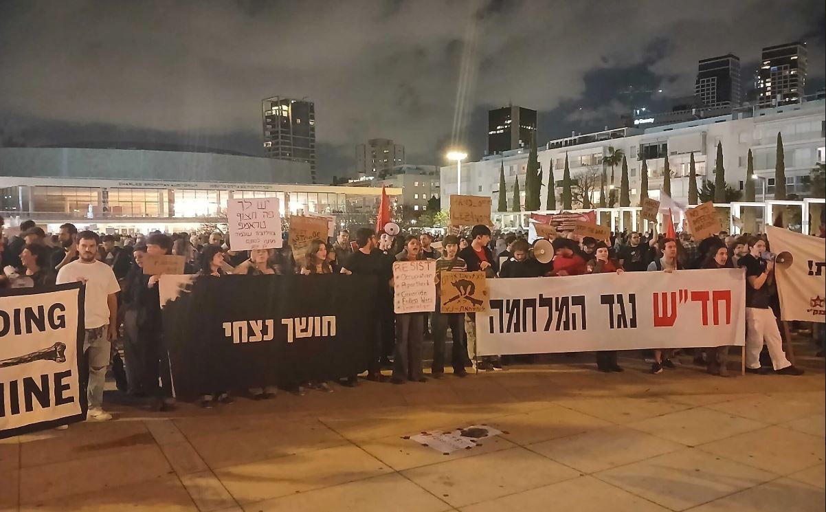 Các cuộc biểu tình do các nhóm cánh tả và phong trào xã hội tổ chức nhằm phản đối cuộc chiến với Iran, đồng thời chỉ trích chính phủ về những cải cách tư pháp gây tranh cãi và chính sách miễn nghĩa vụ quân sự cho sinh viên Do Thái chính thống. Theo ban tổ chức, khoảng 10.000 người đã tập trung tại Quảng trường Habima, trong khi các hãng truyền thông địa phương ước tính số người tập trung là khoảng 2.000 người - cao gấp đôi mức trần cho phép. Trước đó, giới hạn tụ tập được áp dụng do lo ngại tấn công tên lửa từ Iran trong nhiều tuần, nhưng đã được nới lỏng một phần sau khi lệnh ngừng bắn có hiệu lực.