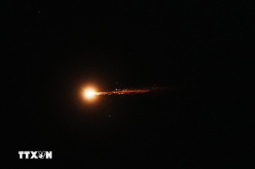 Vệt sáng của tên lửa phóng từ Iran bay qua bầu trời thành phố Ramallah, Bờ Tây ngày 28/2. (Ảnh: AA/TTXVN)
