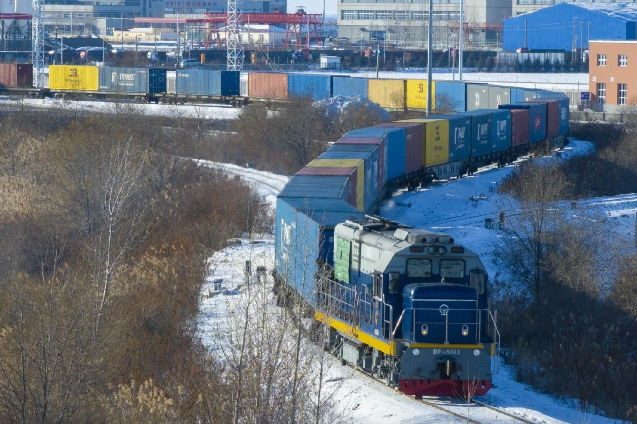 Một đoàn tàu chở hàng Trung Quốc - châu Âu khởi hành từ Tongjiang, tỉnh Hắc Long Giang. Nguồn: Tân Hoa Xã