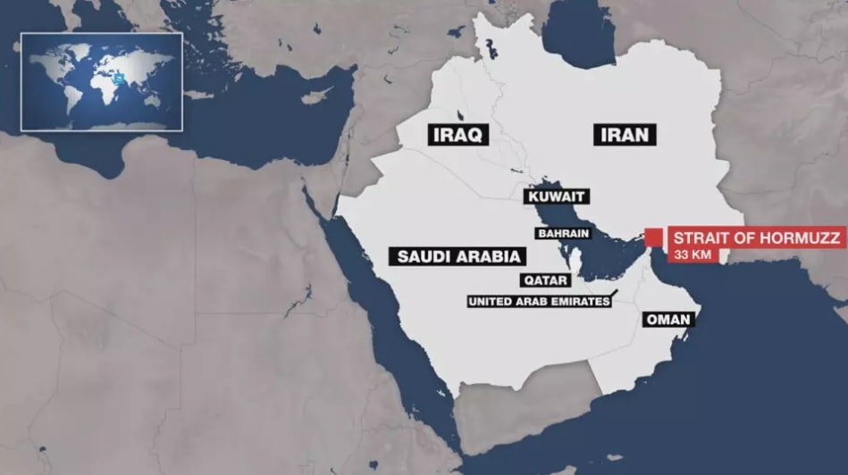 Eo biển chiến lược Hormuz đang bị gián đoạn, ảnh hưởng đến nguồn cung năng lượng toàn cầu. Ảnh: France 24