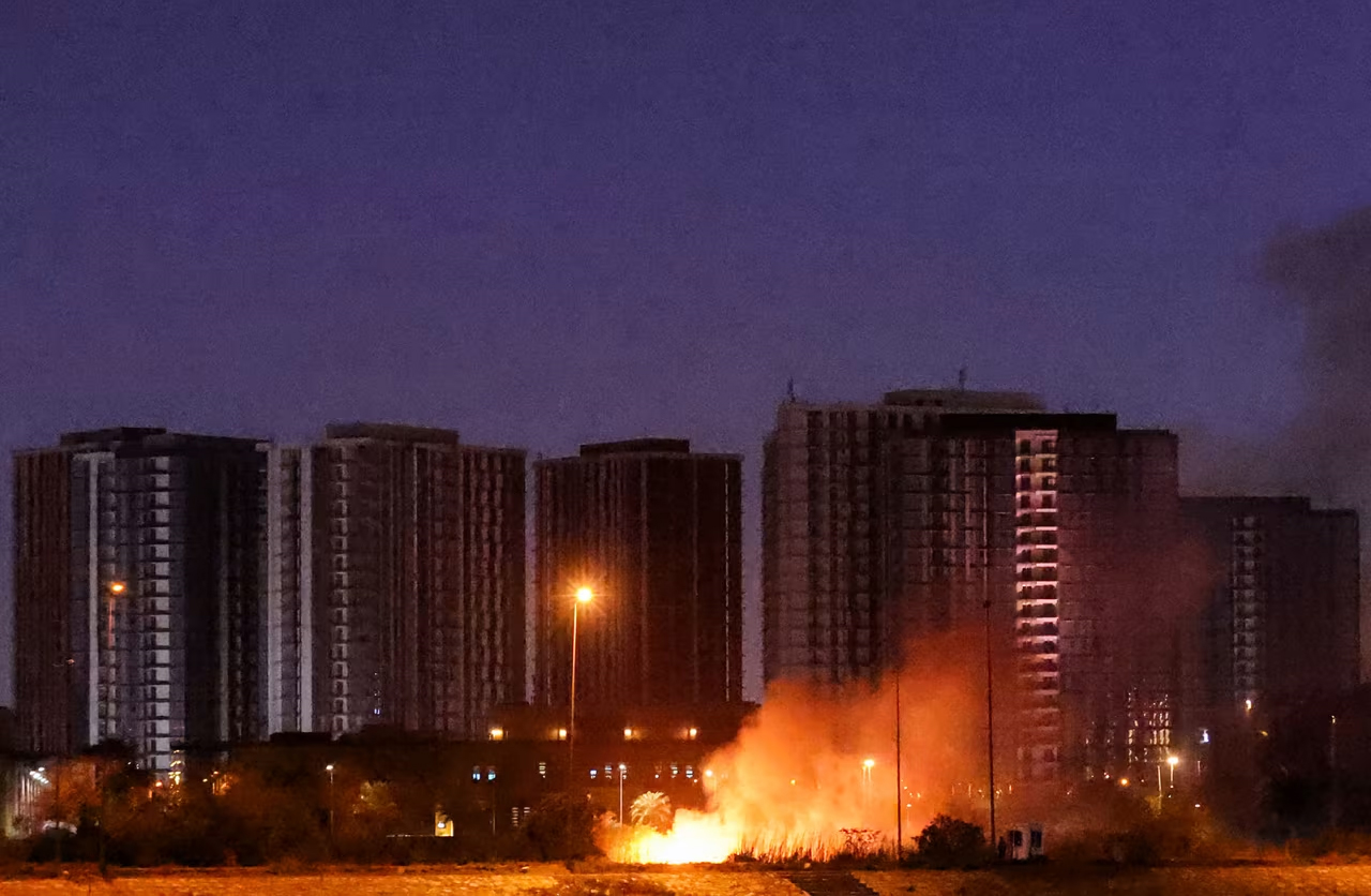 Một đám cháy bùng phát bên ngoài khuôn viên trụ sở Đại sứ quán Mỹ trong khu vực Vùng Xanh tại Thủ đô Baghdad, Iraq ngày 17-3. Ảnh: Getty Images