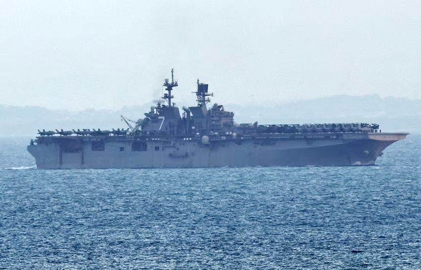 Ảnh chụp tàu USS Tripoli đang di chuyển gần Singapore. Nguồn: Reuters