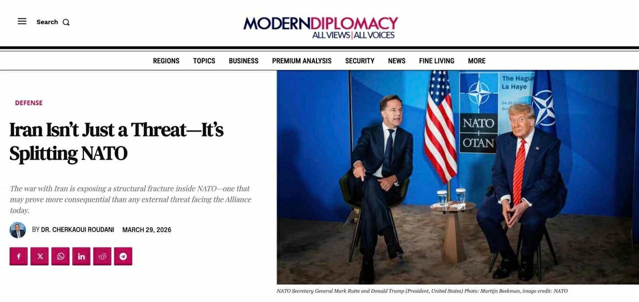 Đó là nhận định từ TS. Cherkaoui Roudani (*) trong bài viết “Iran Isn’t Just a Threat-It’s Splitting NATO” (Tạm dịch: Iran không chỉ là mối đe dọa mà đang chia rẽ nội bộ NATO) đăng tải trên Modern Diplomacy ngày 29/3.