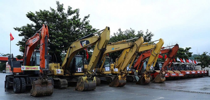 Máy móc, phương tiện được chuẩn bị sẵn sàng để thi công dự án. Ảnh: Hùng Việt