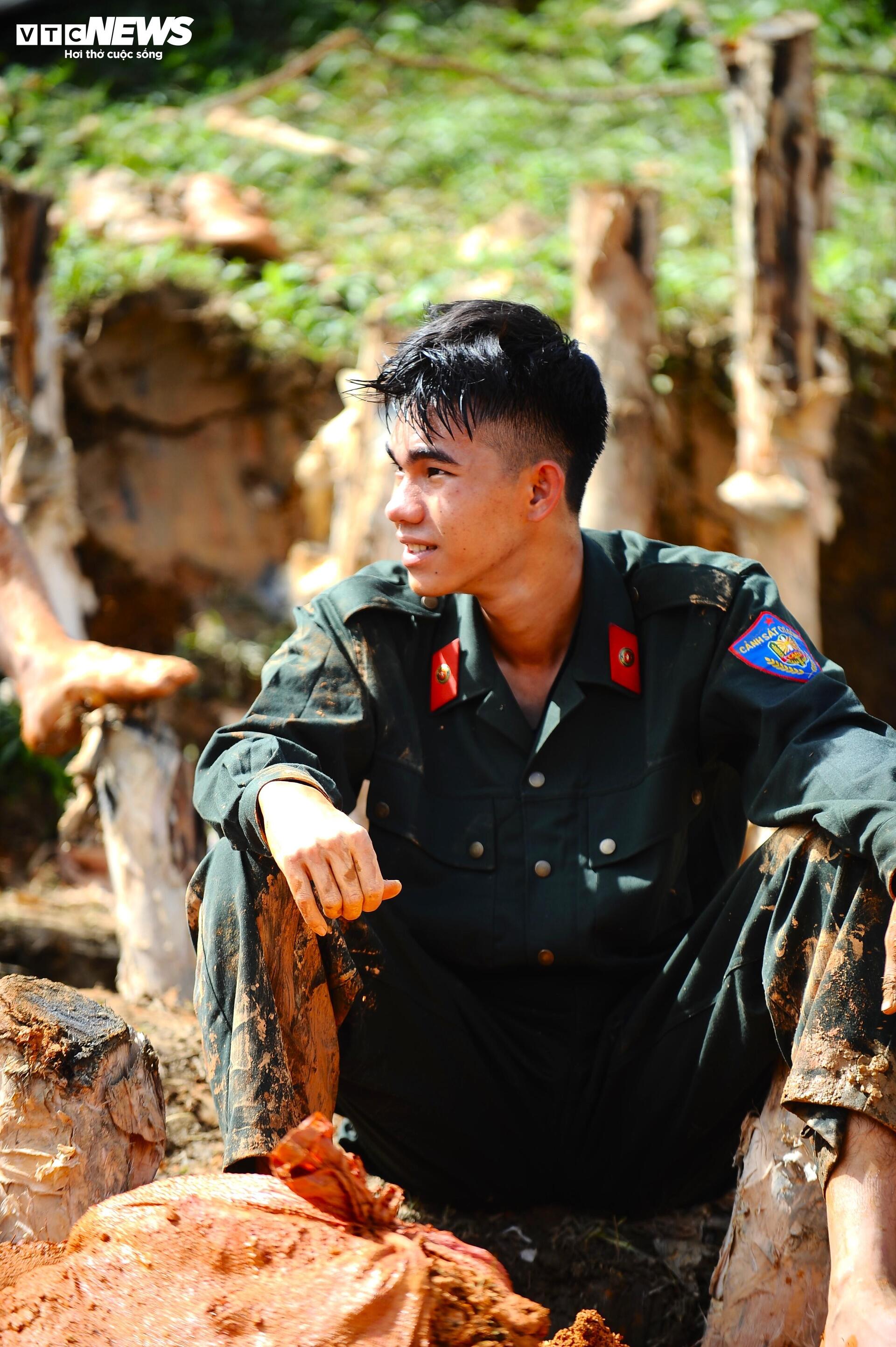Những chiến sĩ trẻ hối hả di chuyển đất liên tục giữa cái nắng gay gắt.