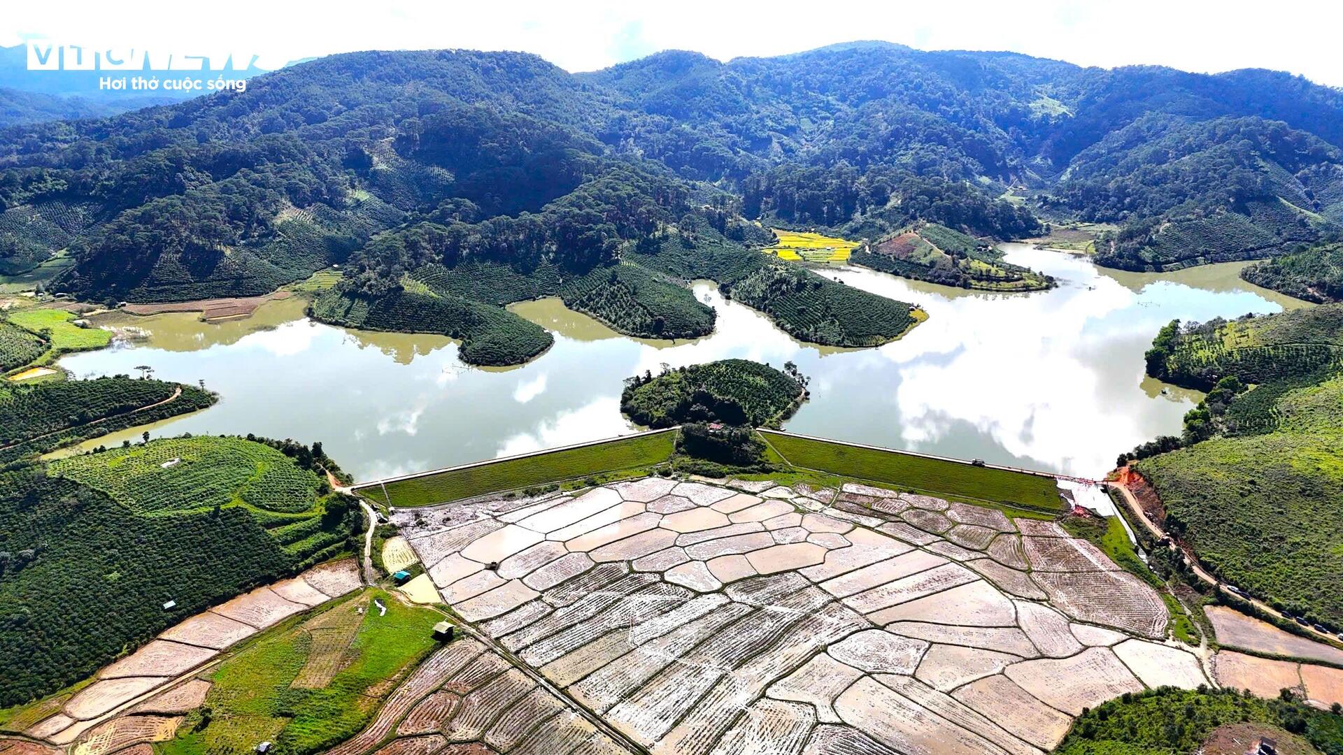 Toàn cảnh hồ Cay An nhìn từ trên cao.