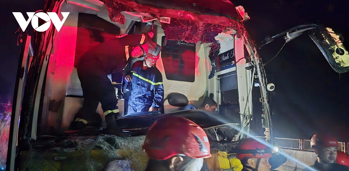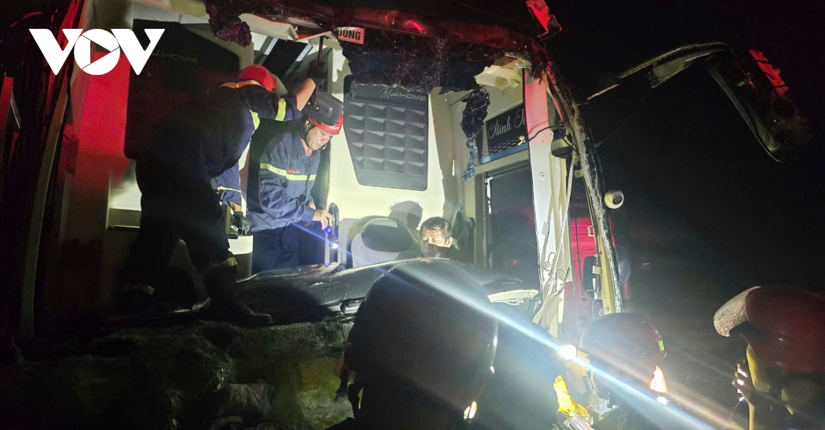 Nhận tin báo, lực lượng Cảnh sát Phòng cháy chữa cháy và cứu nạn cứu hộ, Công an thành phố Đà Nẵng điều động lực lượng đến hiện trường cứu nạn. Vụ tai nạn làm 4 hành khách bị thương, tài xế xe khách mắc kẹt trong cabin. Cảnh sát Phòng cháy chữa cháy và cứu nạn cứu hộ đã triển khai lực lượng, phương tiện di chuyển 4 hành khách ra ngoài. Đồng thời sử dụng thiết bị banh thủy lực để kích phần đầu cabin bị biến dạng lên đưa tài xế mắc kẹt ra khỏi xe. Nguyên nhân vụ tai nạn đang được cơ quan Công an điều tra, lãm rõ.