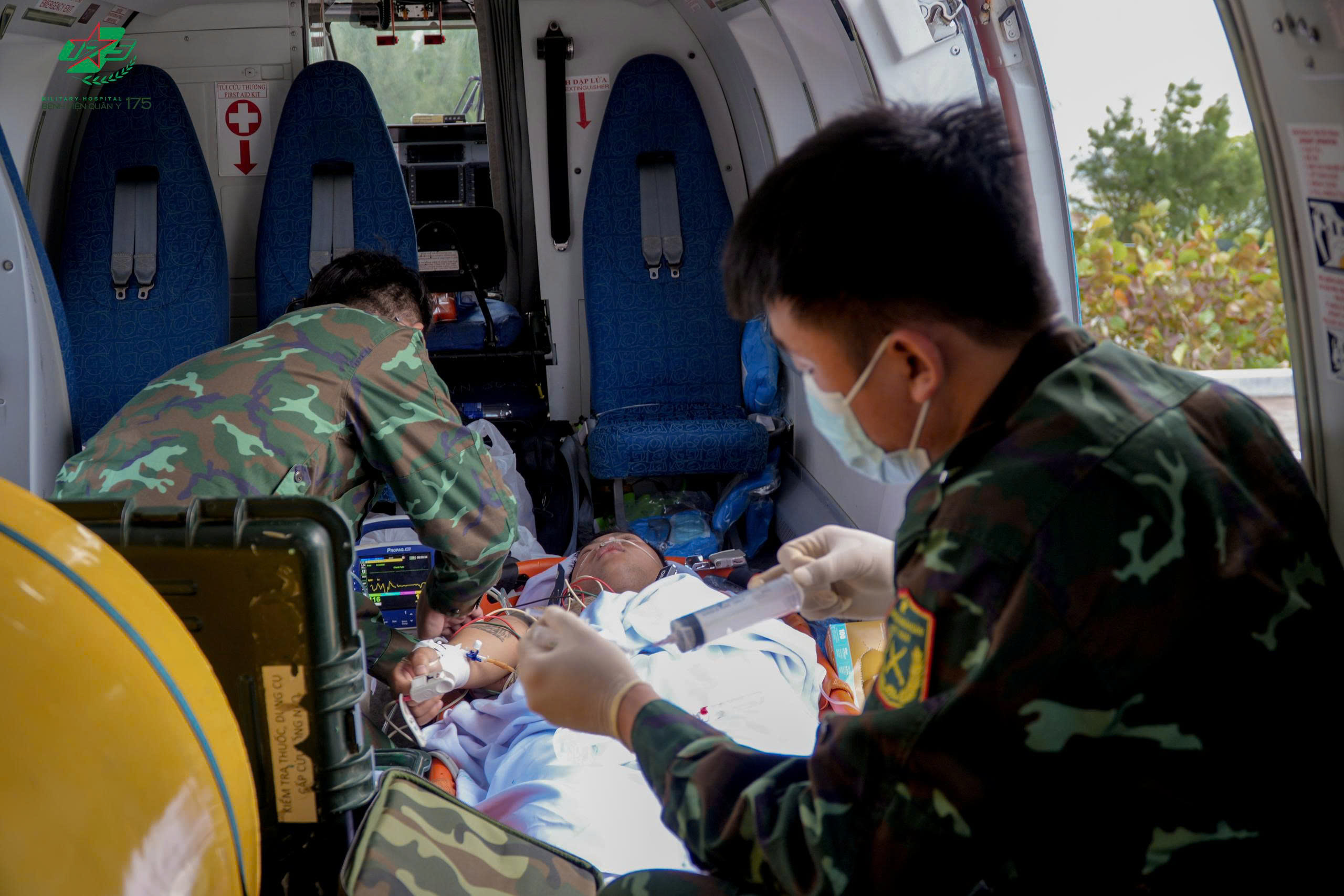 Nhận định đây là ca bệnh tối cấp, nếu không điều trị chuyên sâu kịp thời có thể tử vong, Bệnh viện Quân y 175 đã khẩn trương báo cáo và xin ý kiến Cục Quân y – Tổng cục Hậu cần Kỹ thuật, đồng thời kích hoạt phương án cấp cứu đường không trong thời gian ngắn nhất. Đến 0 giờ 30 phút ngày 15-1, chuyến bay cấp cứu đường không được thực hiện trong đêm, tiếp cận bệnh nhân trong tình trạng hôn mê, suy hô hấp, được đặt nội khí quản, hỗ trợ thở máy, đưa bệnh nhân rời đảo Sinh Tồn về đất liền.