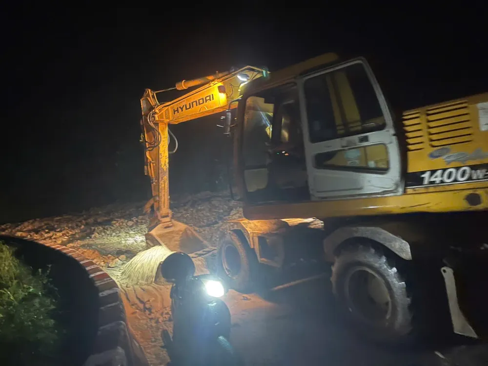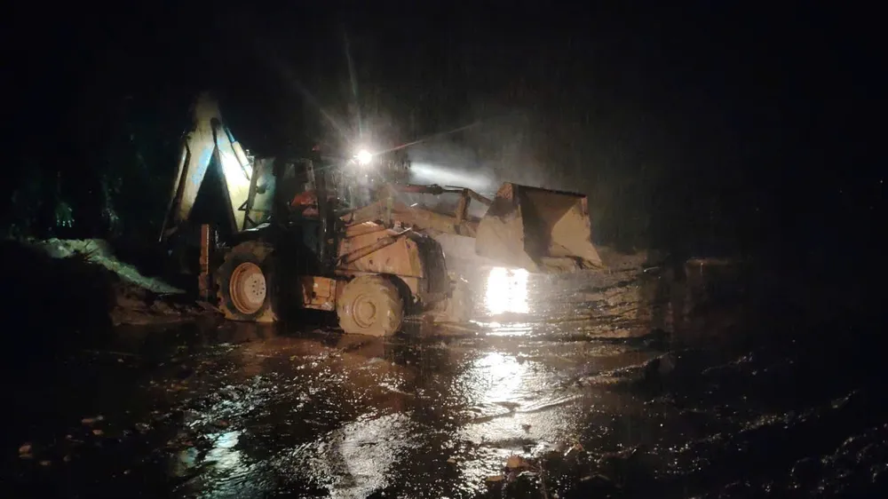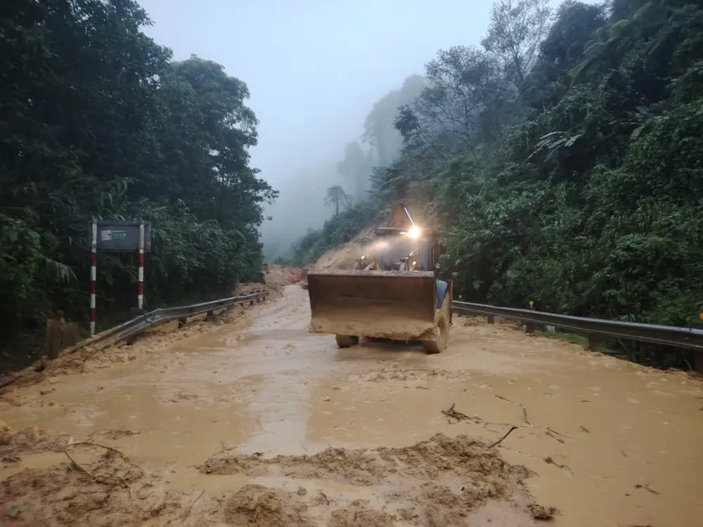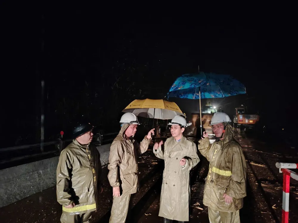 Giữa đêm mưa như trút nước, lực lượng chức năng, các đơn vị quản lý đường bộ vẫn khẩn trương san gạt đất đá, nỗ lực thông tuyến để nối lại mạch giao thông.