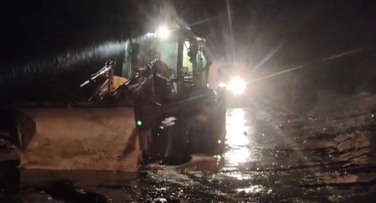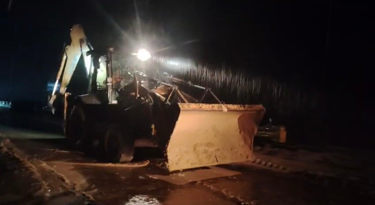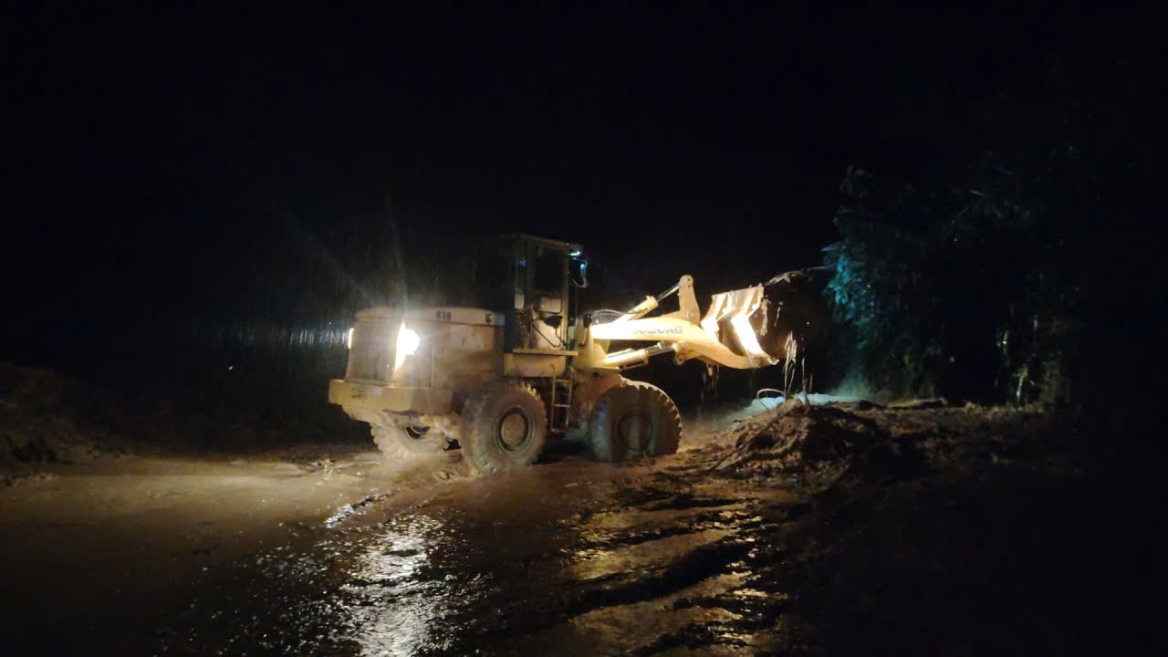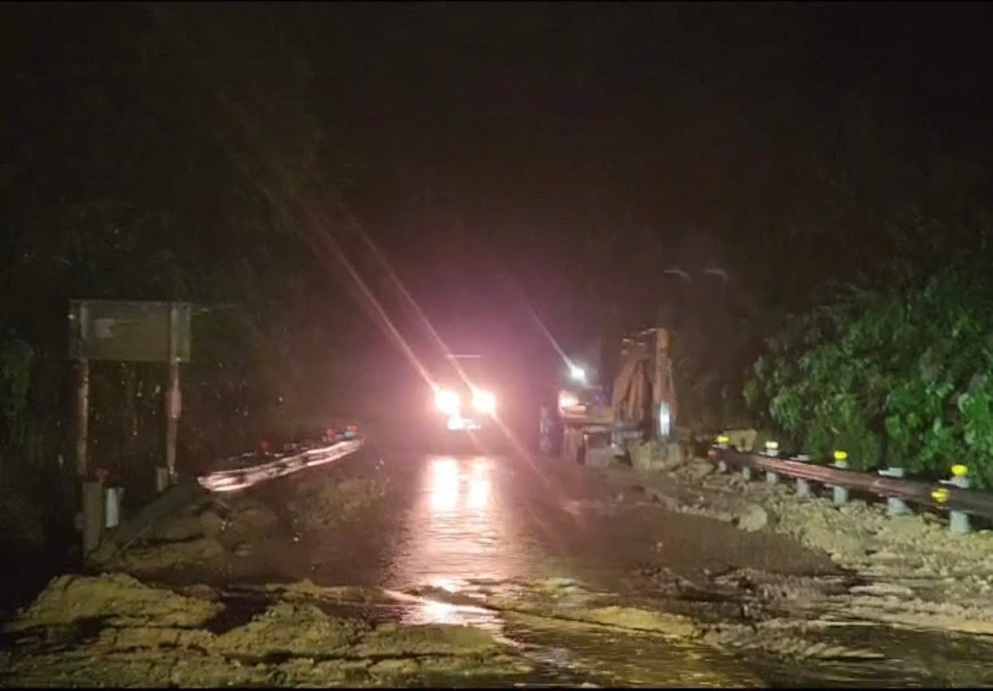 Lực lượng chức năng khẩn trương khắc phục sạt lở trên đèo Lò Xo trong đêm 26/10.