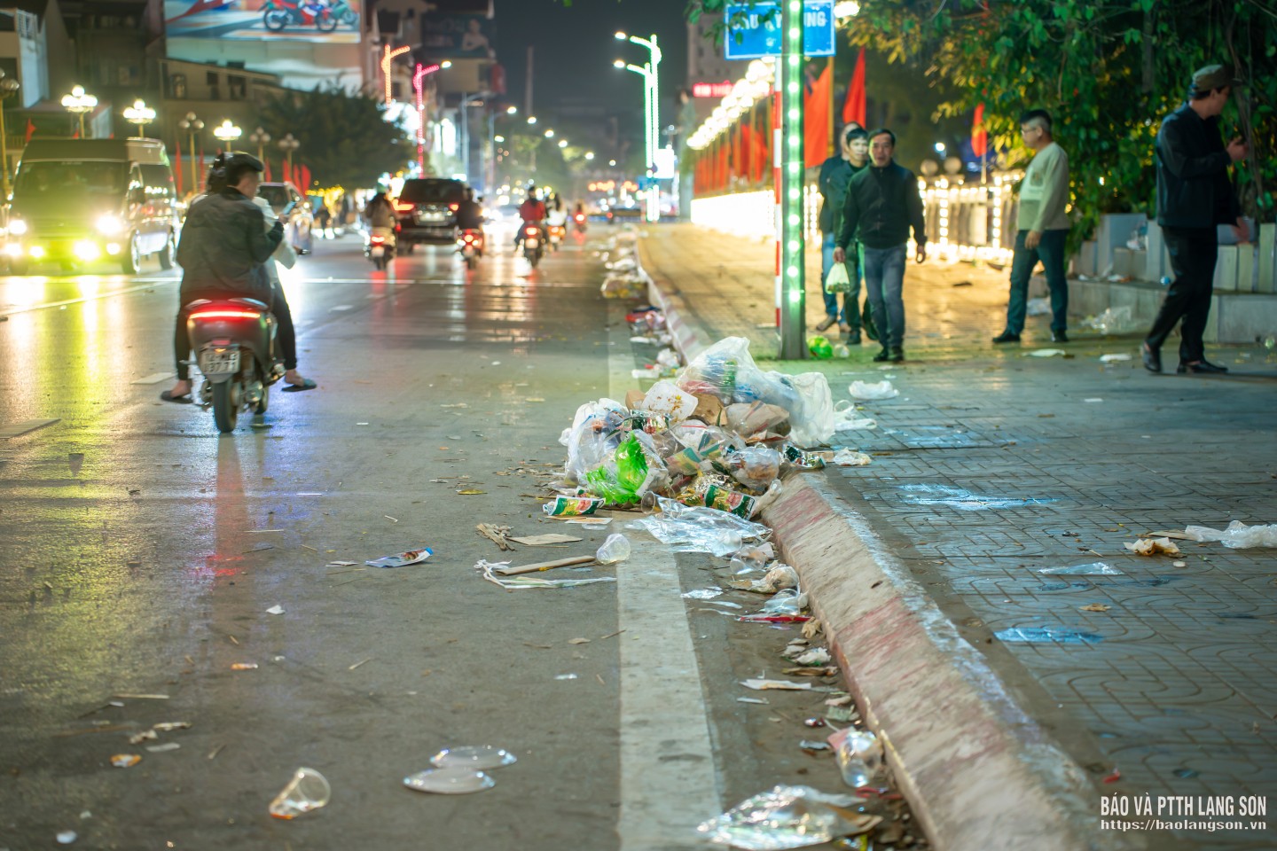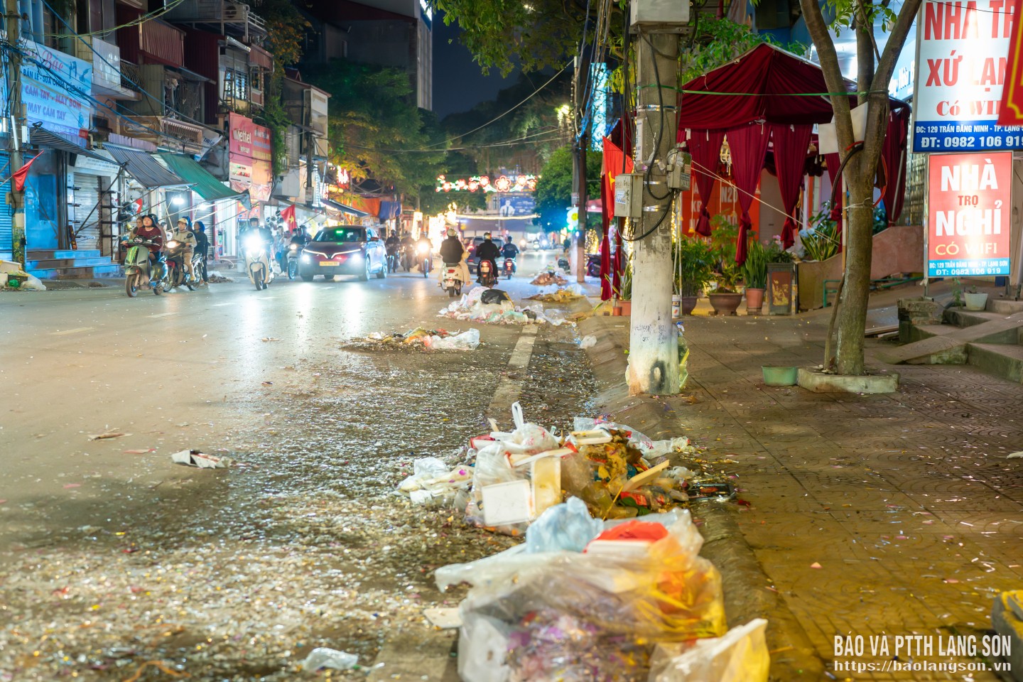Rác thải gồm túi nhựa, hộp xốp, xác pháo giấy… vương vãi trên đường Trần Đăng Ninh, phường Kỳ Lừa