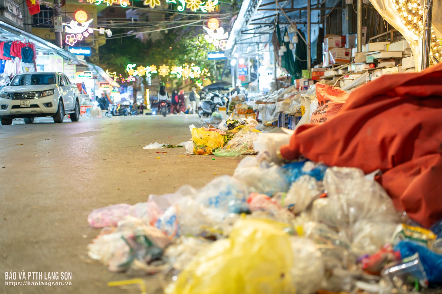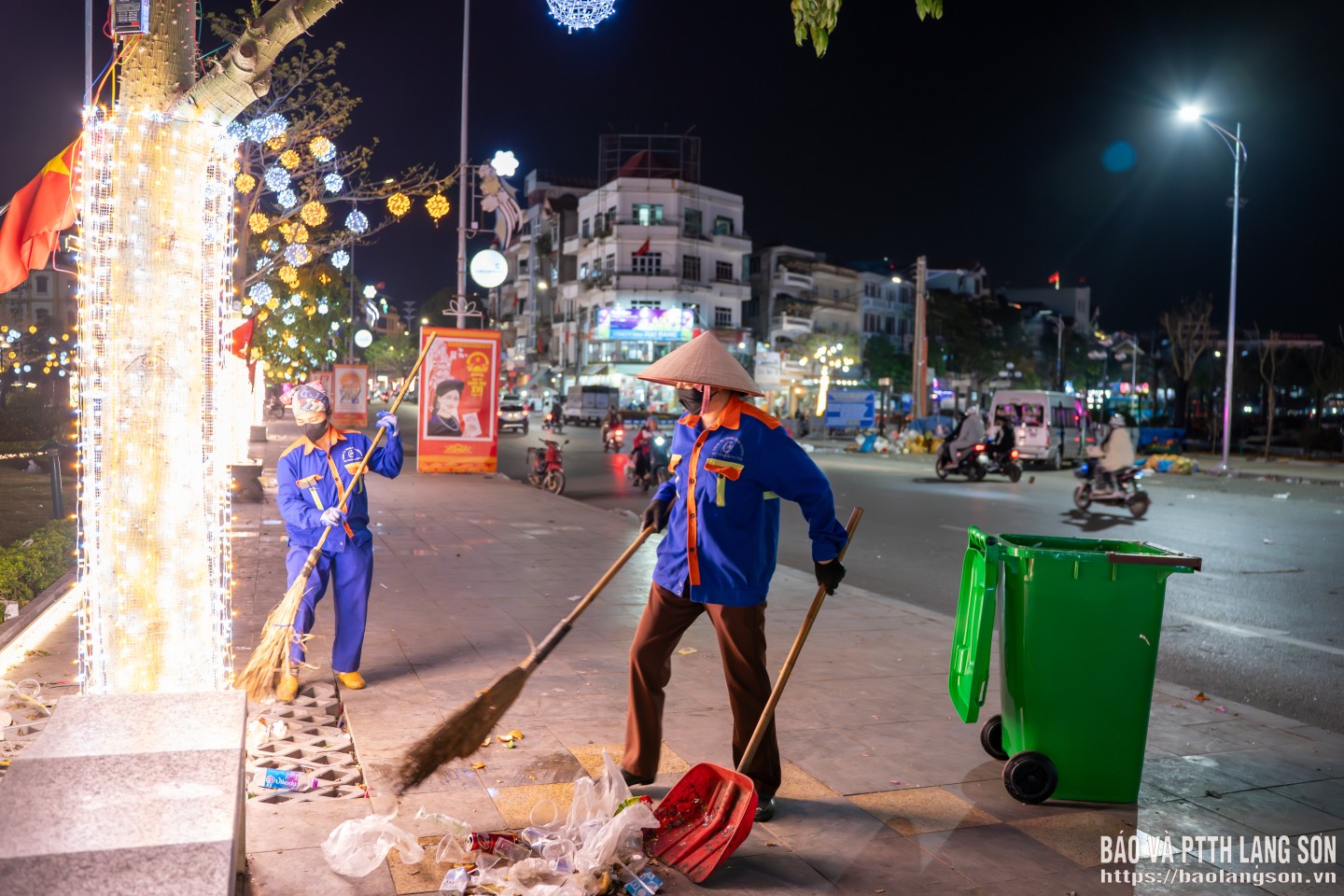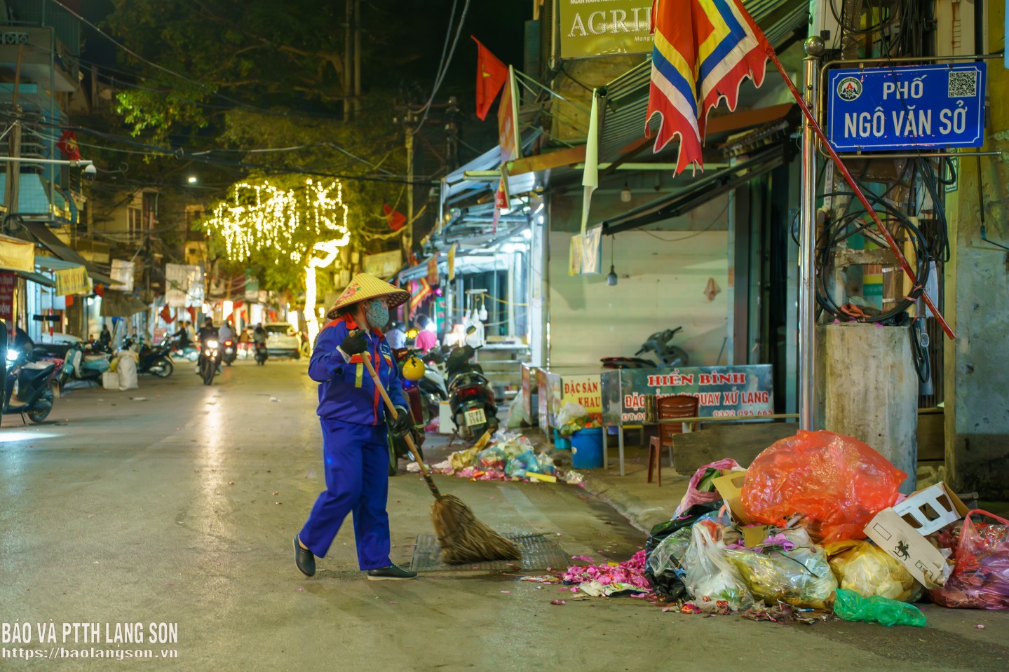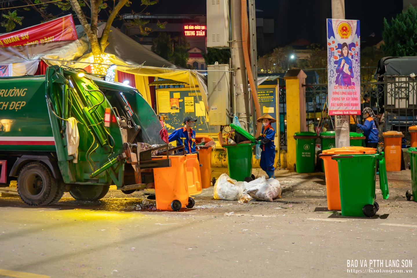 Rác tại tuyến đường Bắc Sơn được công nhân vệ sinh môi trường thu gom, những dịp này công nhân công ty TNHH Huy Hoàng huy động 100% nhân lực để thu gom, xử lý rác thải