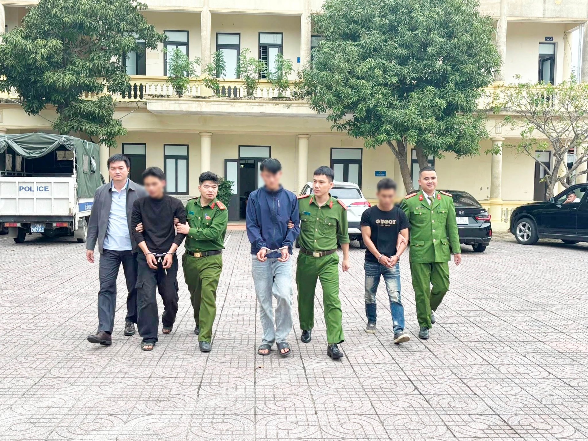 Lực lượng chức năng bắt giữ các đối tượng (Ảnh Công an Hà Tĩnh)