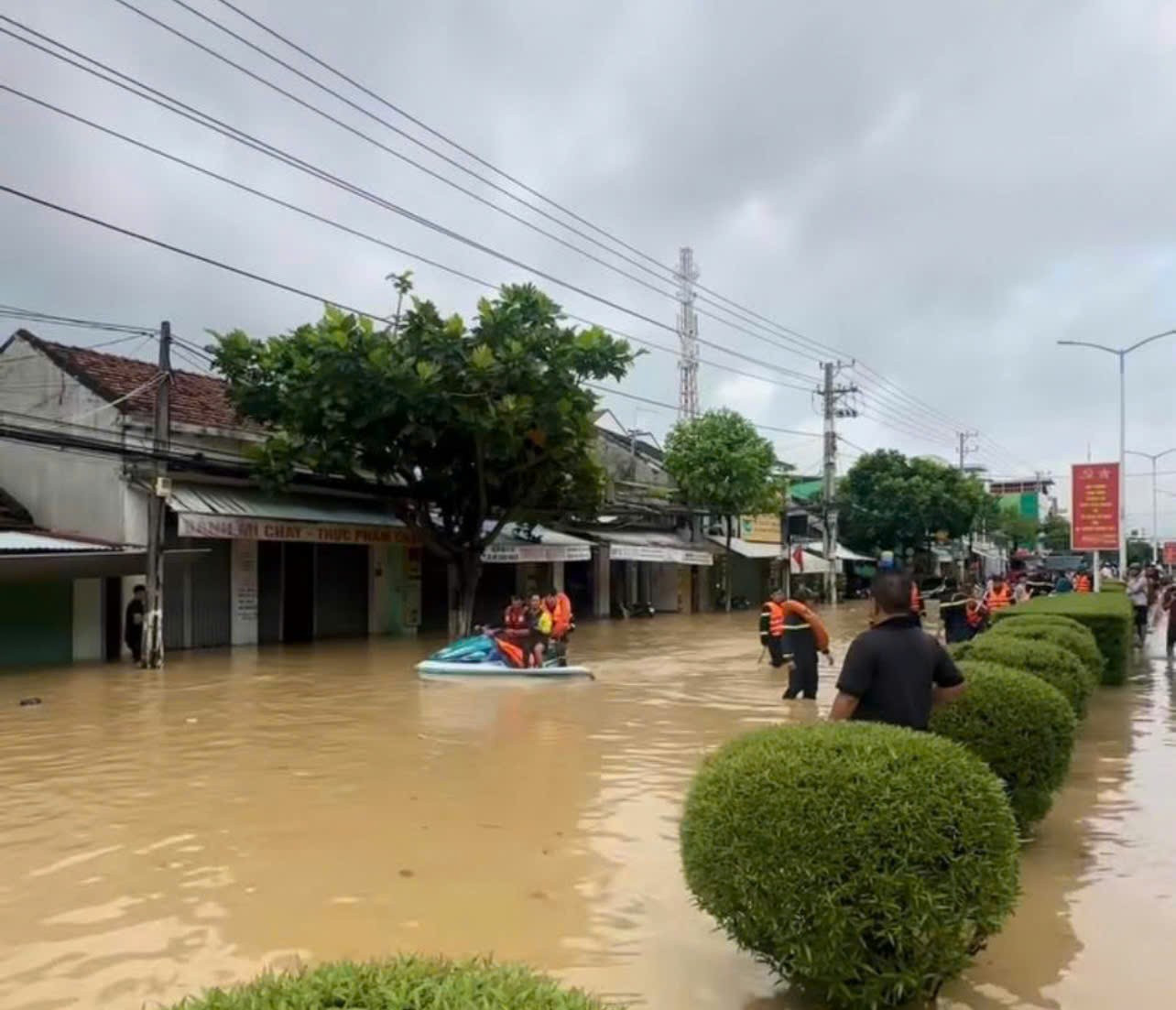 Nhiều khu vực nước ngập sâu khiến mọi hoạt động của người dân trở nên rất khó khăn.