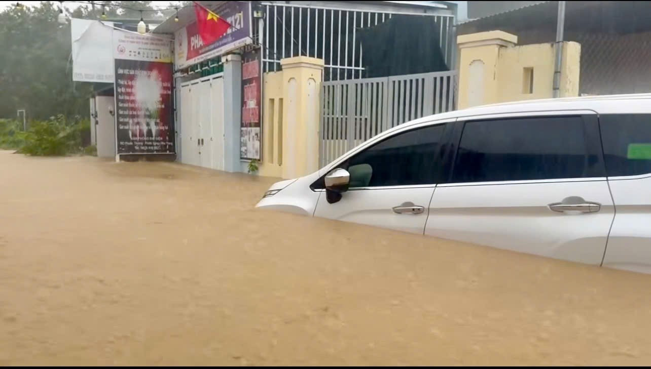 Tại khu vực đường Phong Châu, nước lũ dâng gần 1m, chảy xiết, nhiều ô tô và tài sản của người dân ngập sâu trong nước. Công tác tiếp cận gặp nhiều trở ngại do địa hình ngập nặng và dòng chảy mạnh.
