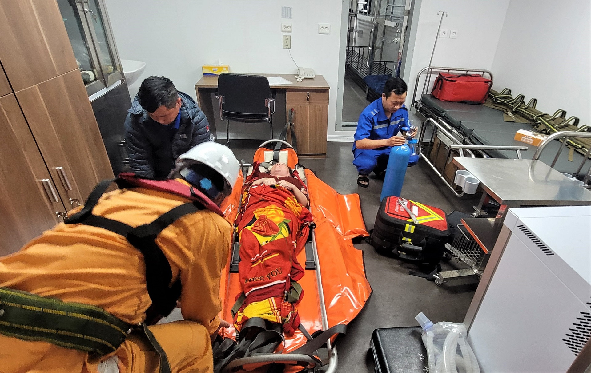 Trước tình trạng nguy kịch của bệnh nhân, dưới sự chỉ đạo của Ban Chỉ đạo Phòng thủ dân sự Quốc gia, tàu SAR 631 đang ứng trực tại Đà Nẵng được điều động khẩn cấp ra đảo. Cùng đi có ê kíp gồm 2 bác sĩ của Trung tâm 115 Đà Nẵng, mang theo đầy đủ thuốc men và thiết bị cấp cứu.