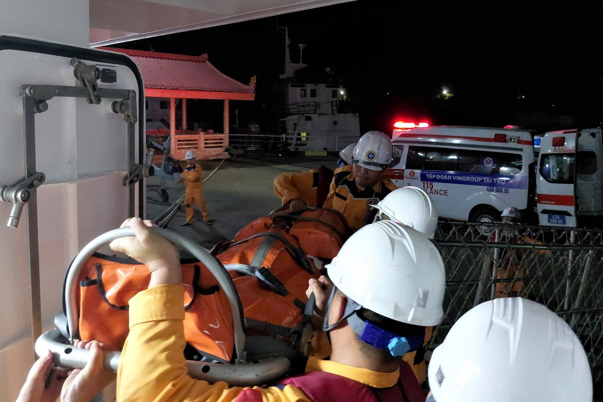 Bệnh nhân được đưa lên tàu SAR 631 để cấp cứu và vận chuyển vào đất liền trong đêm. Ảnh: N.X
