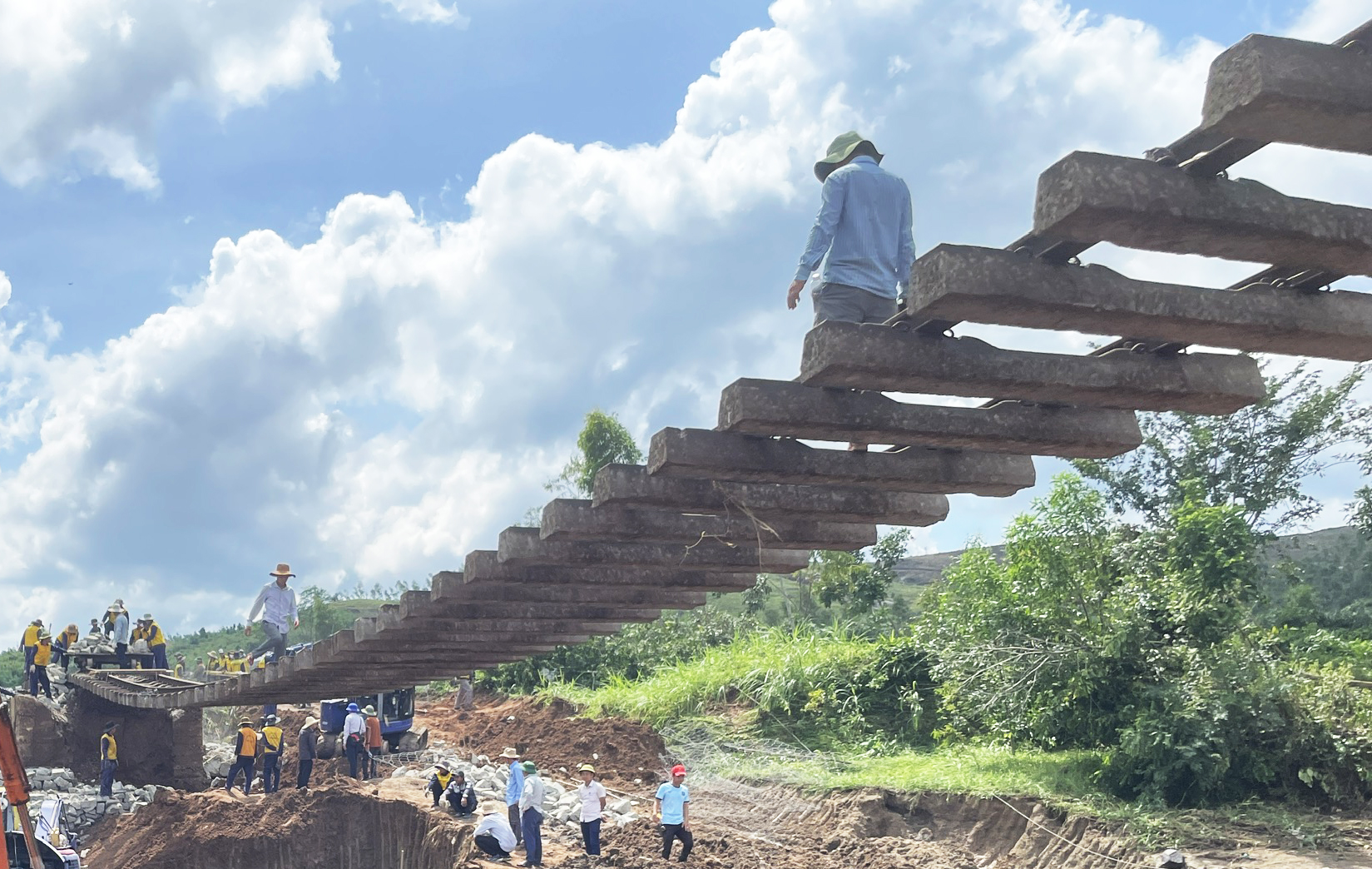 Để khắc phục, đơn vị thi công đã mở đường công vụ nối từ quốc lộ 19C tiếp cận khu vực sạt lở nhằm tăng tốc độ vận chuyển vật liệu. “Sau mưa bão, đến ngày 8-11, chúng tôi mới tiếp cận được hiện trường. Qua khảo sát, địa chất khu vực rất phức tạp nên chưa thể xác định được thời điểm thông tuyến”, một đại diện giám sát thi công cho biết.