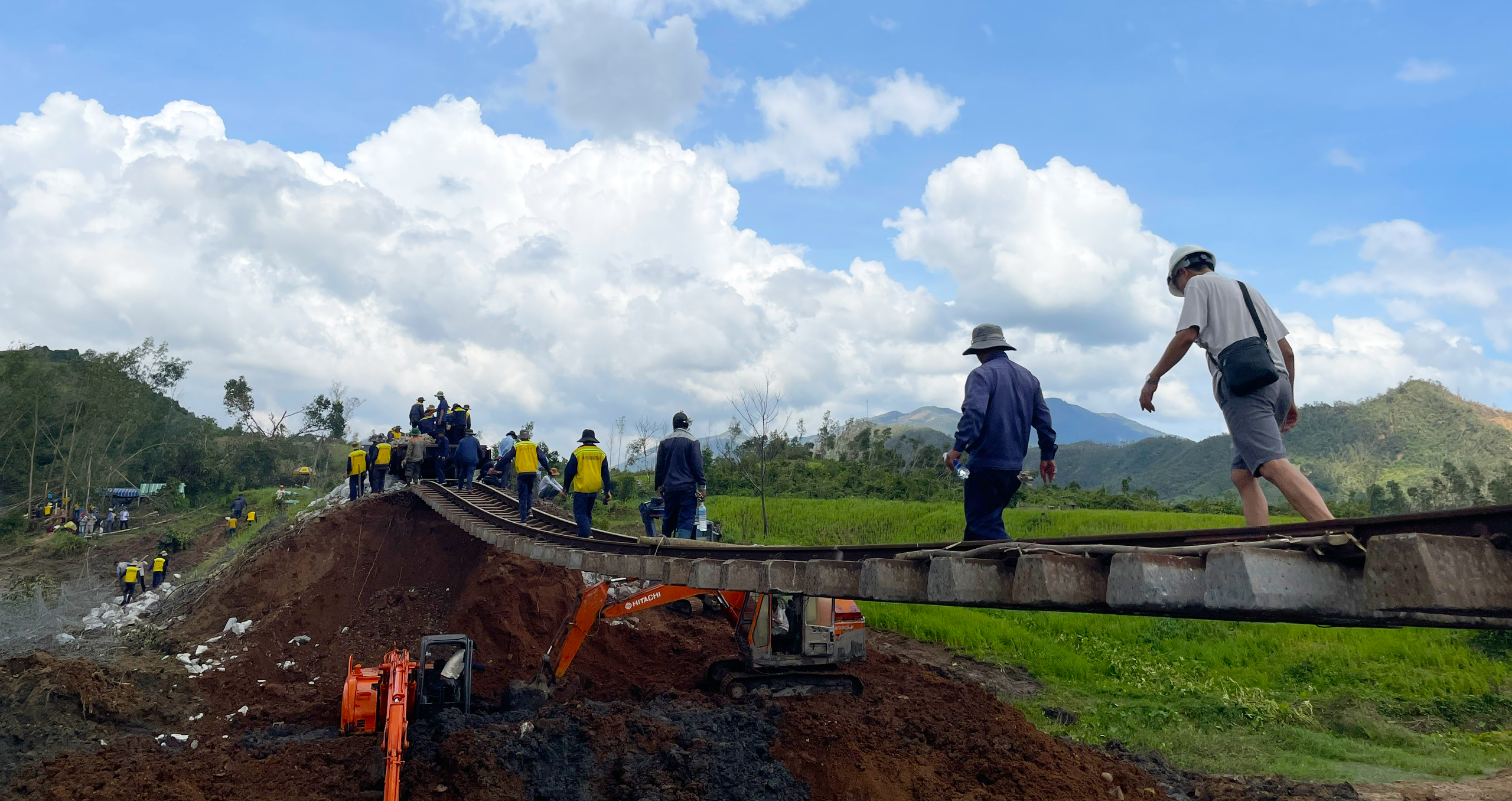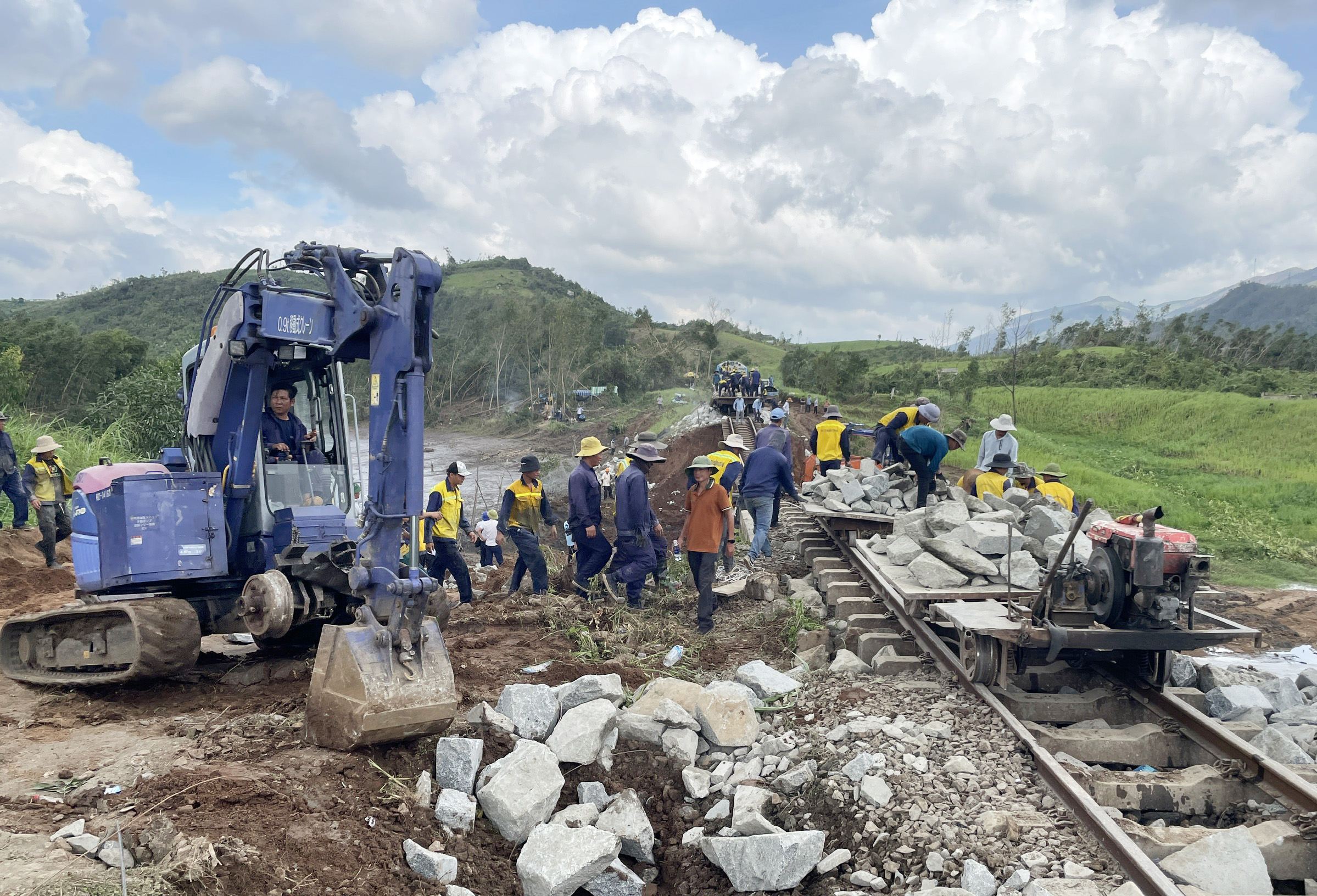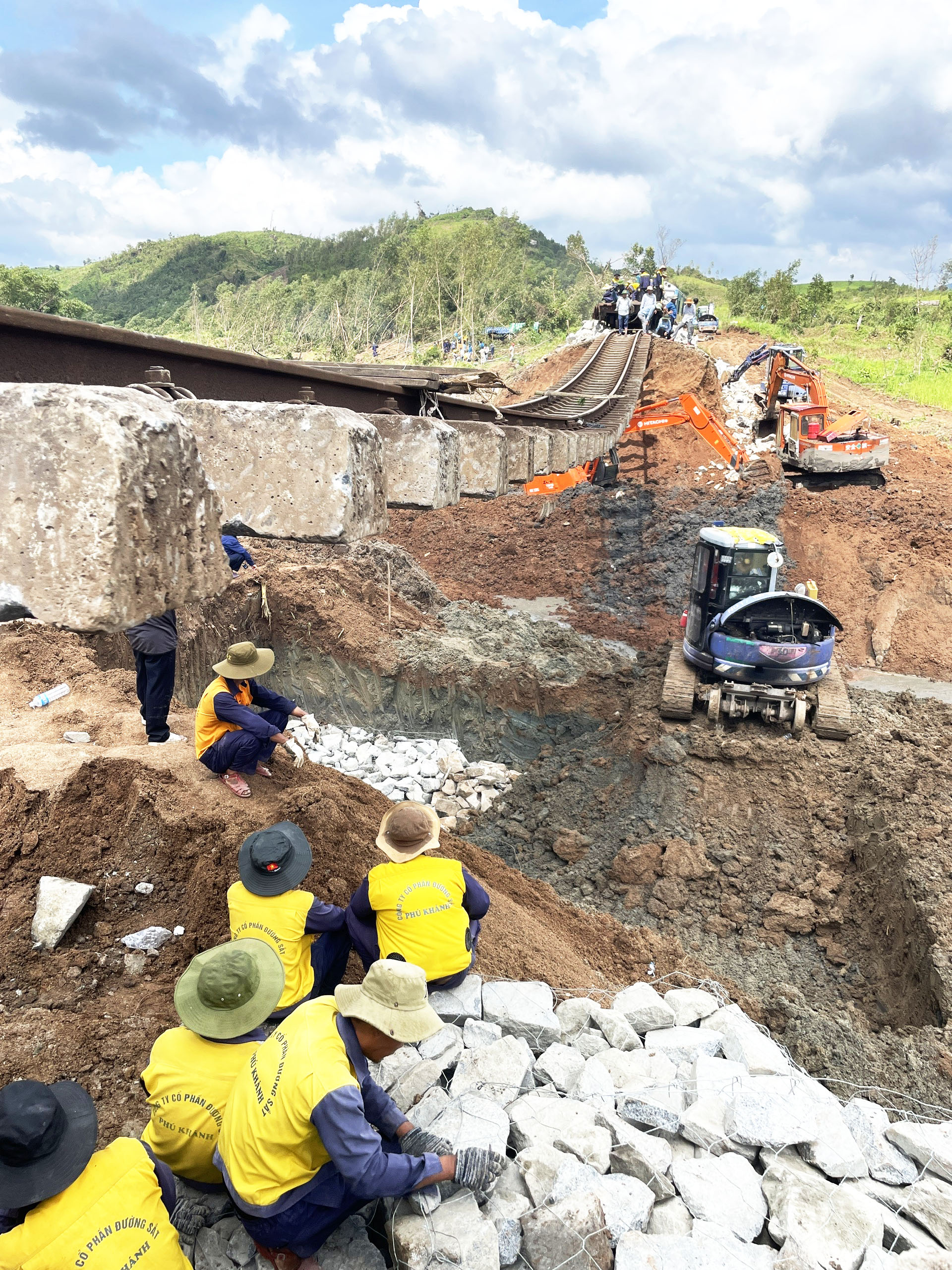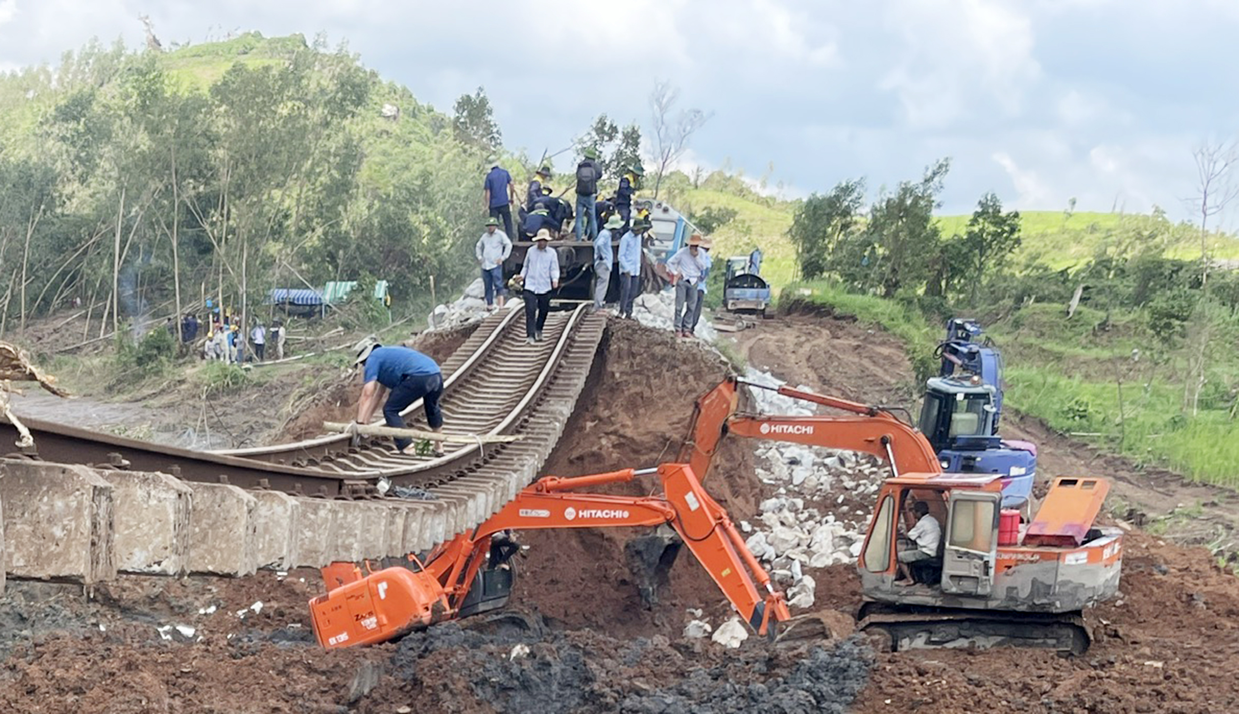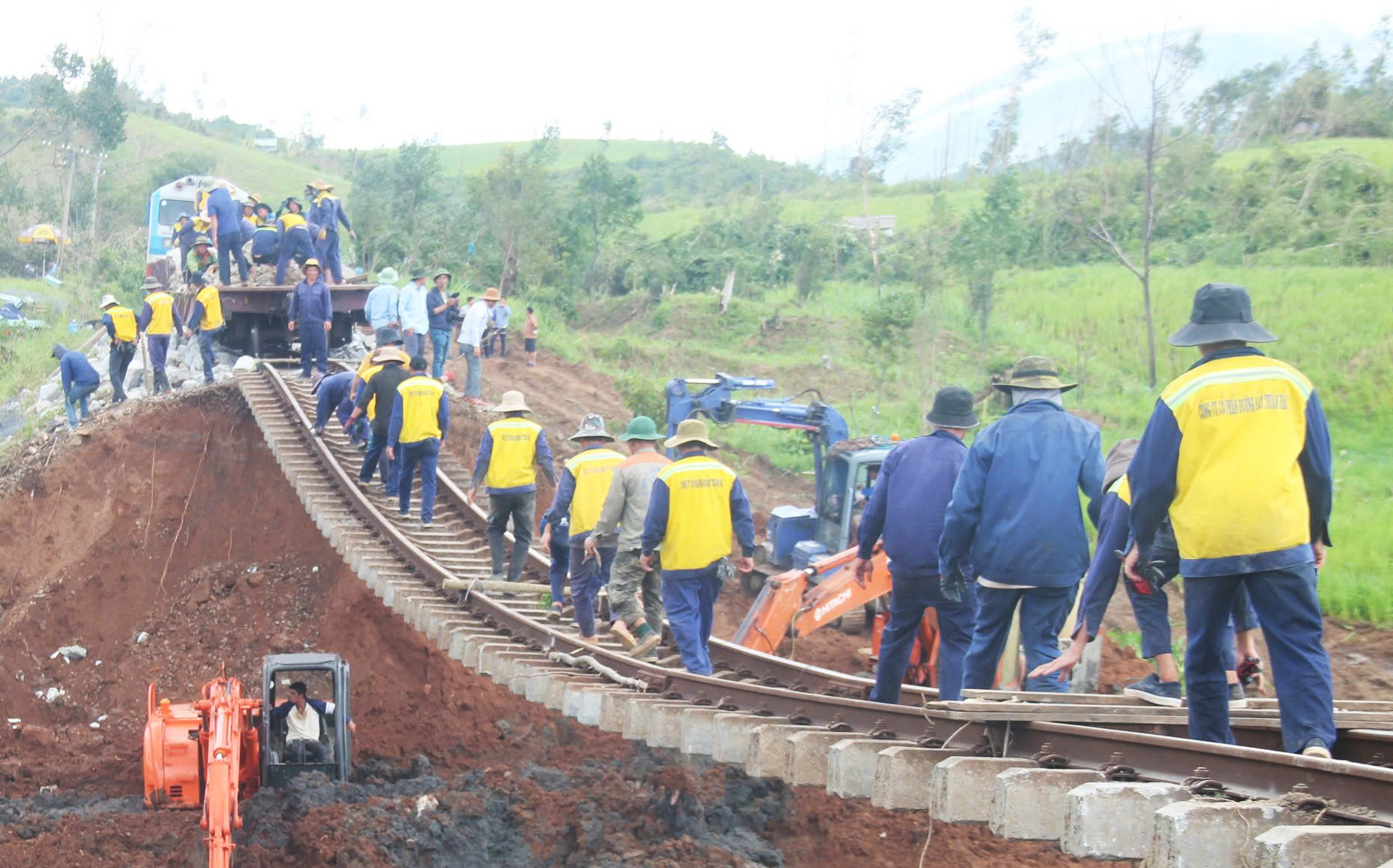 Tại hiện trường, ông Nguyễn Quốc Vượng, Phó Tổng Giám đốc Tổng Công ty Đường sắt Việt Nam cho biết, mưa bão vừa qua đã gây thiệt hại nặng nề cho hạ tầng đường sắt, làm gãy, đổ hàng trăm cột thông tin, nhiều đoạn bị sạt lở nghiêm trọng, ước tính thiệt hại ban đầu lên đến hàng tỷ đồng.