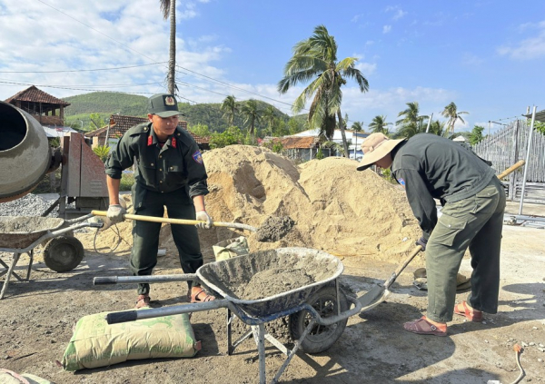 Từ những ngày đầu khẩn trương triển khai các hoạt động thu dọn cây cối, vật liệu đổ nát tại các căn nhà cũ bị thiên tai bão lũ cuốn sập; sau đó tiến hành đào móng, đắp nền, vận chuyển gạch, đá, xi măng, sắt thép đến từng công trình nhà dân, hỗ trợ thợ xây cắt thép, đan kết khung sắt, đóng ván khuôn, trộn vữa để đổ bê tông kết cấu trụ, móng, dầm…