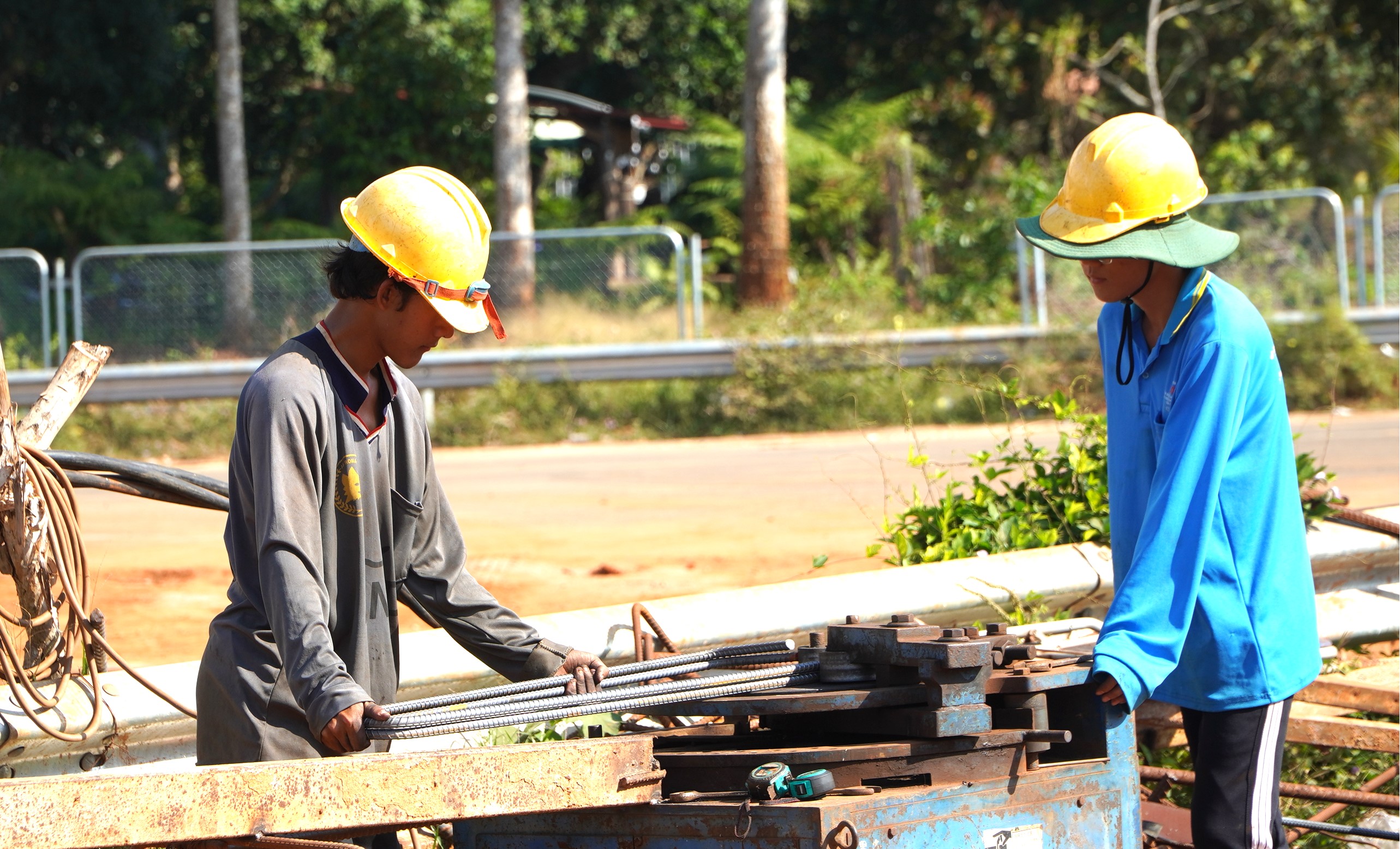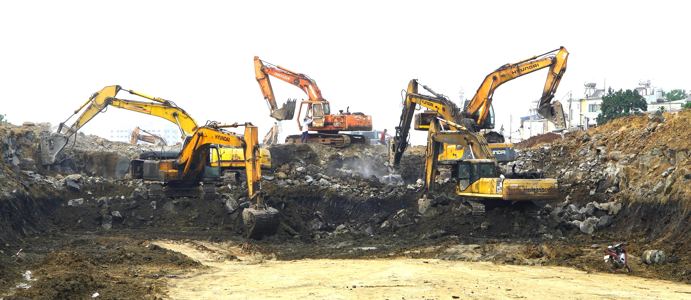 Công nhân, máy móc làm việc liên tục để bắt kịp tiến độ