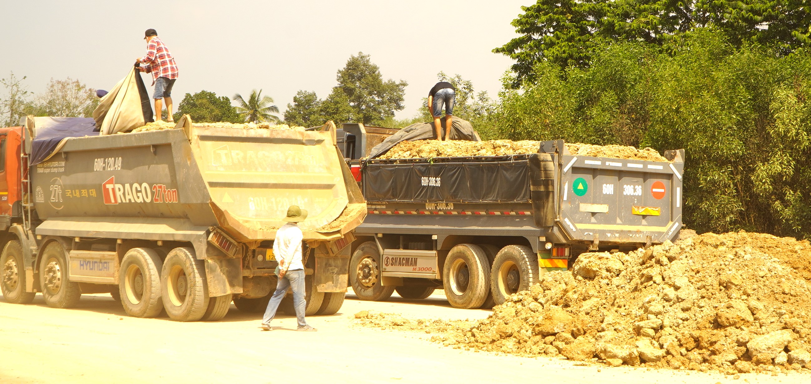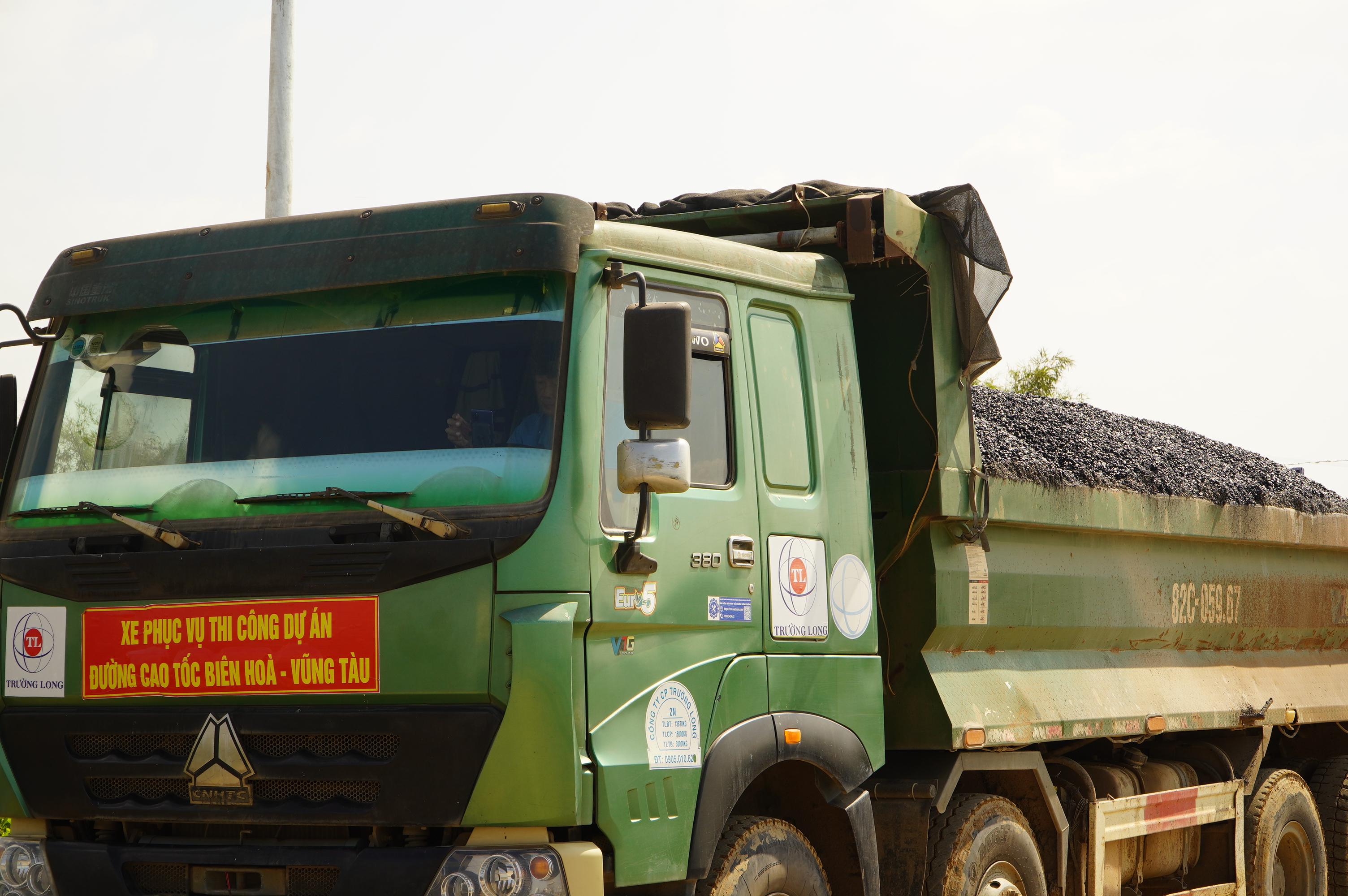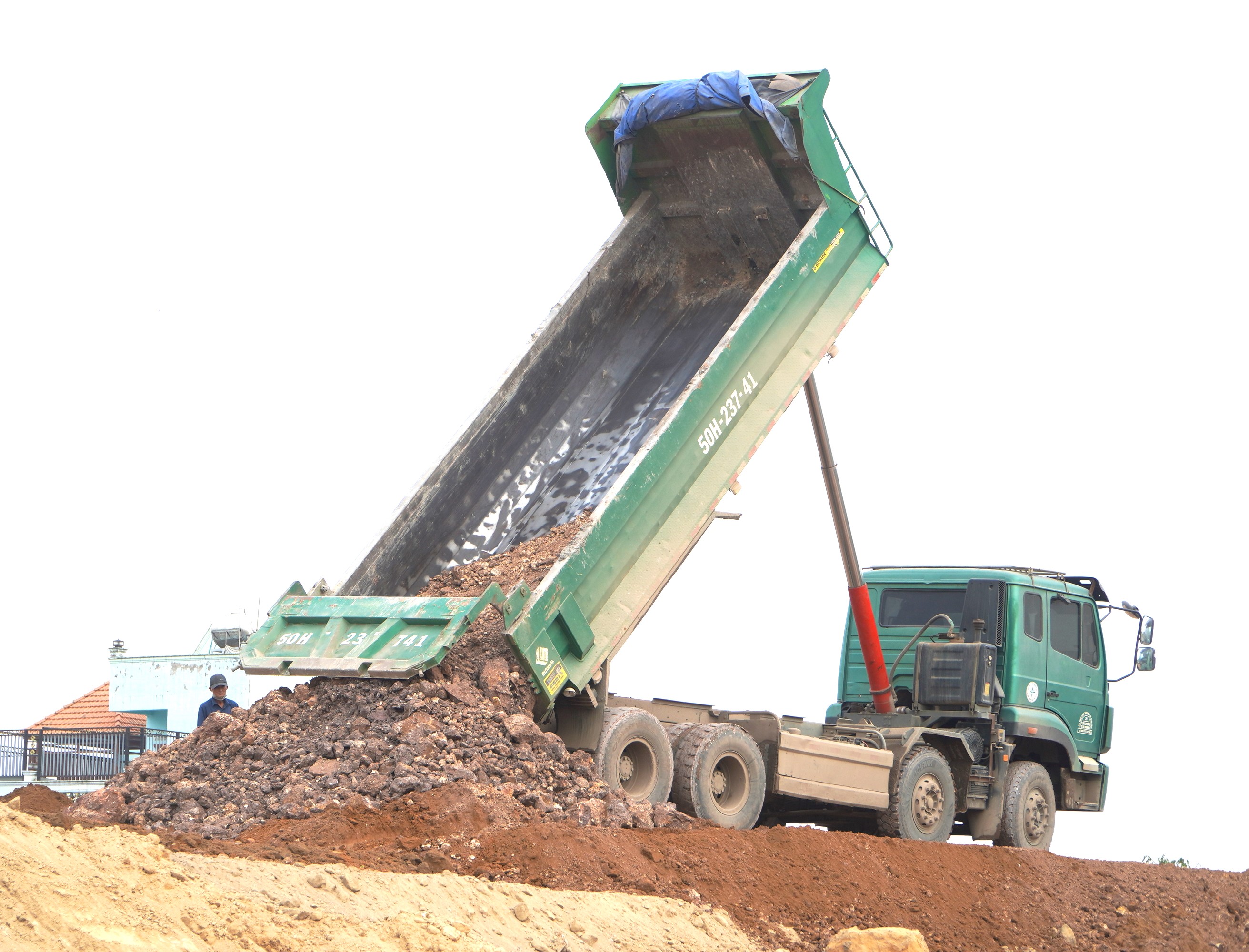 Theo ghi nhận của PV Báo Sài Gòn Giải Phóng, sáng 1-1-2026, tại điểm đầu dự án thành phần 1 cao tốc Biên Hòa – Vũng Tàu đoạn qua Đồng Nai, nhiều xe ben nối đuôi nhau chở đất đá vào công trường.