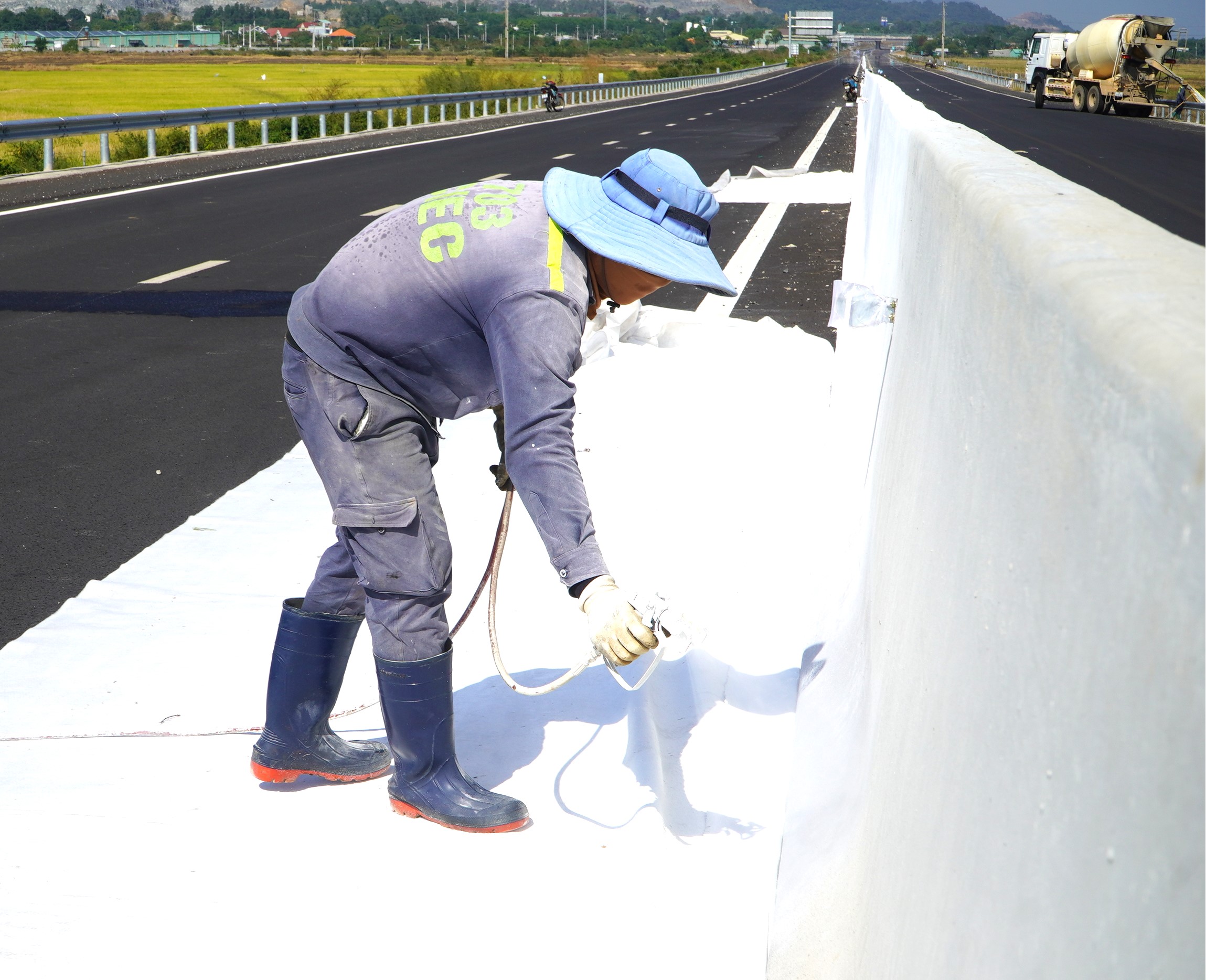 Công nhân hoàn thiện những chi tiết nhỏ trên cao tốc