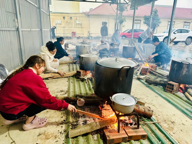Các đội thi cùng nhau nấu bánh chưng bằng phương pháp truyền thống, đỏ lửa suốt ngày đêm chuẩn bị trao quà cho người bệnh.