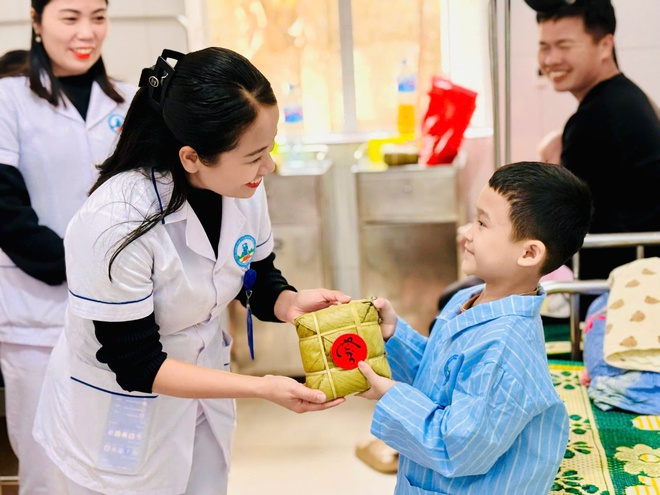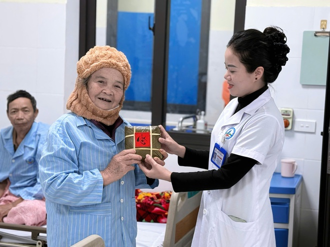 Sau phần chấm thi, hơn 300 chiếc bánh chưng, bánh tét được nấu chín và trao tận tay người bệnh đang điều trị nội trú. Với nhiều bệnh nhân phải ở lại viện những ngày cuối năm, món quà giản dị ấy mang theo lời chúc bình an, tiếp thêm động lực để yên tâm điều trị.