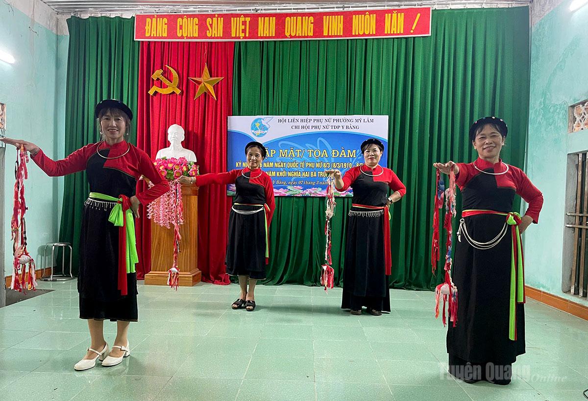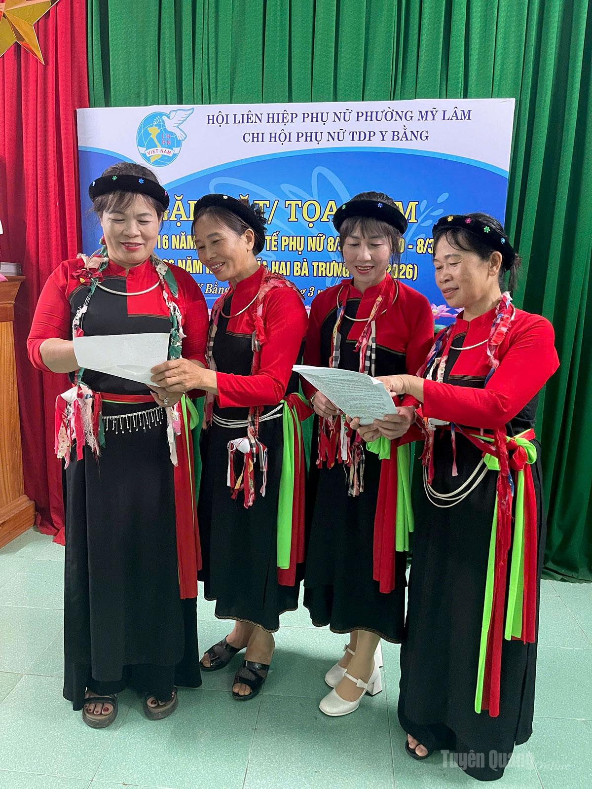 Chị Âu Thị Đệ, Chi hội trưởng Phụ nữ tổ dân phố Y Bằng nói, các hội viên phụ nữ đều là thành viên nòng cốt trong CLB. Các mẹ, các chị, các em đều là những người gương mẫu trong việc giữ gìn các phong tục, tập quán tốt đẹp của đồng bào Cao Lan. Không chỉ học hát, múa, các chị còn làm bánh chim gâu, món bánh truyền thống, rất độc đáo của dân tộc mình; thêu túi đựng đồ bằng cách thêu thủ công, thể hiện sự khéo léo của người phụ nữ Cao Lan.