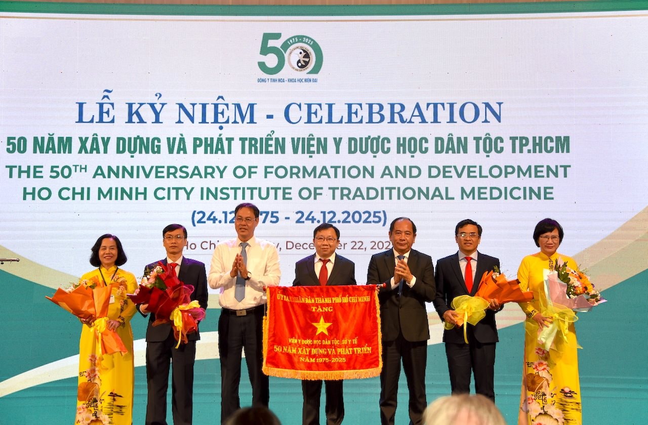 Tại Lễ kỷ niệm, Viện Y Dược học Dân tộc vinh dự được UBND TP.HCM trao tặng Cờ truyền thống, ghi nhận thành tích trong xây dựng và phát triển Viện trong 50 năm qua.
