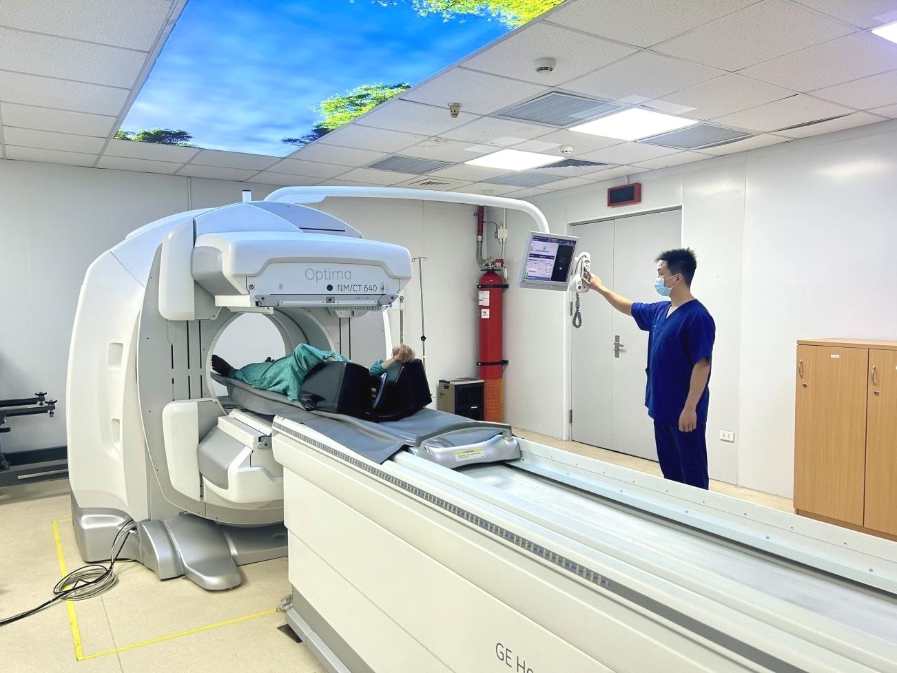 Hệ thống gamma camera SPECT/CT kết hợp công nghệ SPECT và CT, cung cấp hình ảnh chức năng và cấu trúc, giúp chẩn đoán và định vị chính xác tổn thương. Ảnh: BVCC