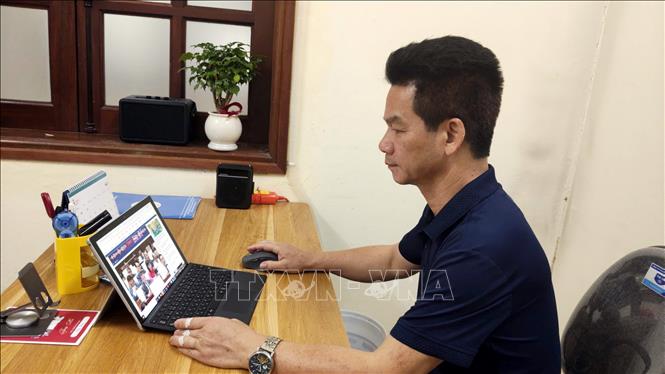Thạc sỹ Nguyễn Mạnh Thắng, Giảng viên Trường Đại học Thành Đông, nguyên Phó Ban Tuyên giáo Tỉnh ủy Hải Dương theo dõi phiên họp của Quốc hội. Ảnh: Mạnh Tú/TTXVN