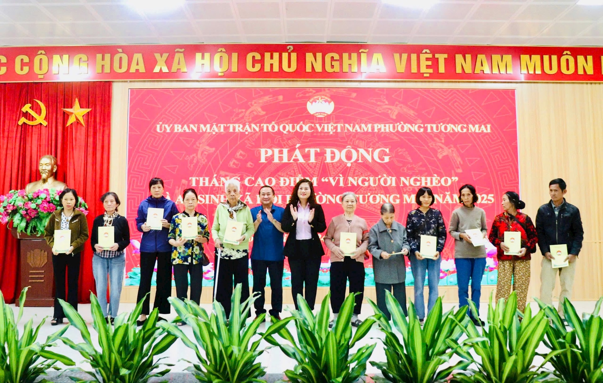Cuối tháng 10-2025, Ủy ban MTTQ Việt Nam phường Tương Mai phát động Tháng cao điểm “Vì người nghèo” và an sinh xã hội. Tại đây, niềm vui của nhiều người được nhân lên khi Ban Vận động Quỹ “Vì người nghèo” phường Tương Mai tặng quà 11 gia đình hộ cận nghèo (mỗi hộ 2 triệu đồng) và 51 gia đình có hoàn cảnh khó khăn (mỗi hộ 1 triệu đồng).