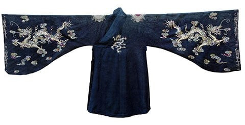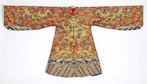 Áo vua mặc trong các dịp thường triều gọi là hoàng bào, thêu viên long (rồng cuộn tròn) bằng tơ vàng có nạm trân châu. Áo vua mặc khi tế giao gọi là long cổn, màu đen, tay thụng, thêu lưỡng long triều nhật (hai con rồng chầu mặt trời) dọc hai thân trước.