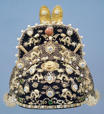 Mũ vua đội khi thiết đại triều cho 31 hình rồng bằng vàng.