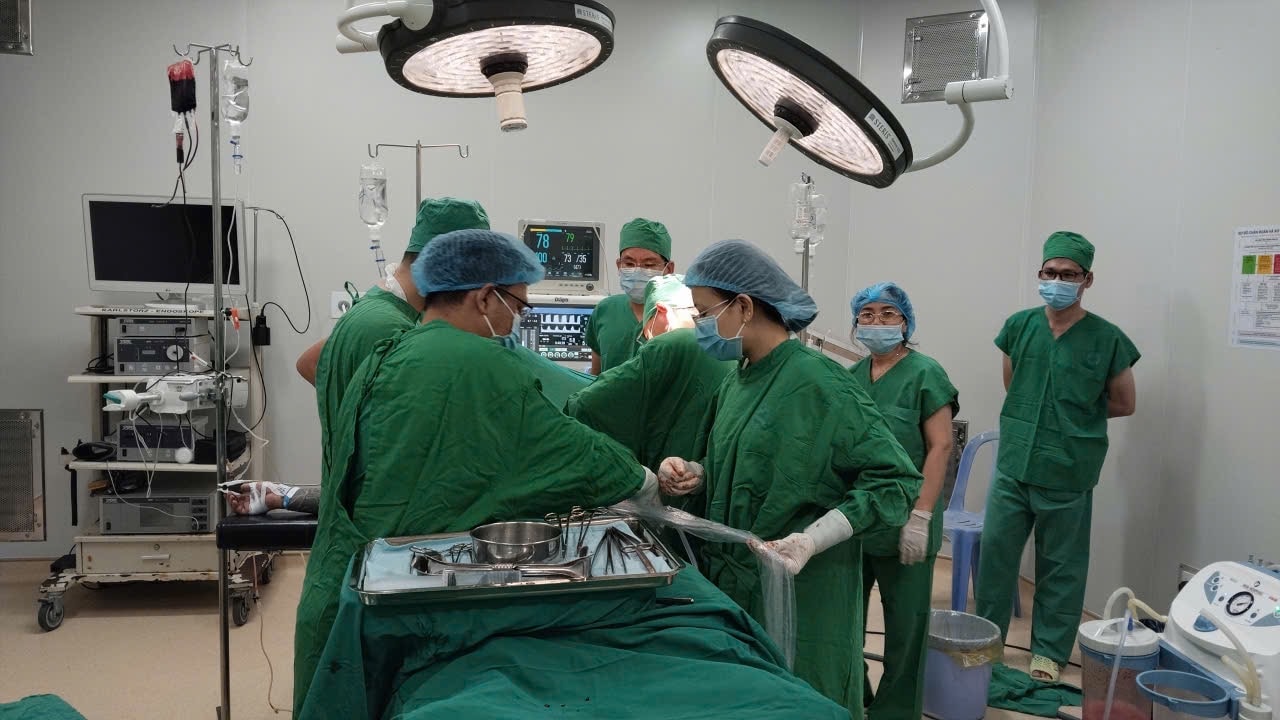 Ê-kip bác sĩ của Bệnh viện Đa khoa Bình Thuận đang phẫu thuật bệnh nhân trong dịp Tết