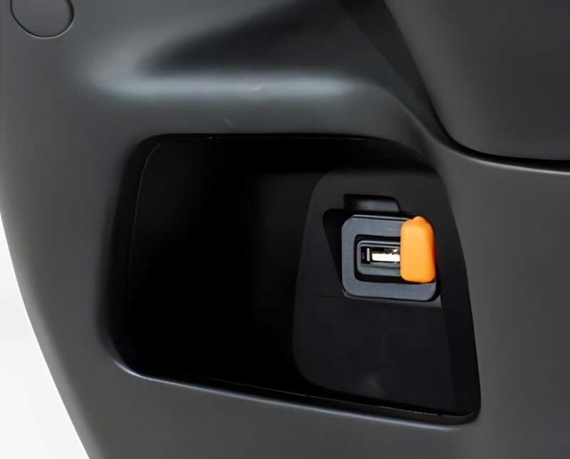 Hốc chứa đồ kèm cổng sạc USB đầu xe (Ảnh: Yadea).